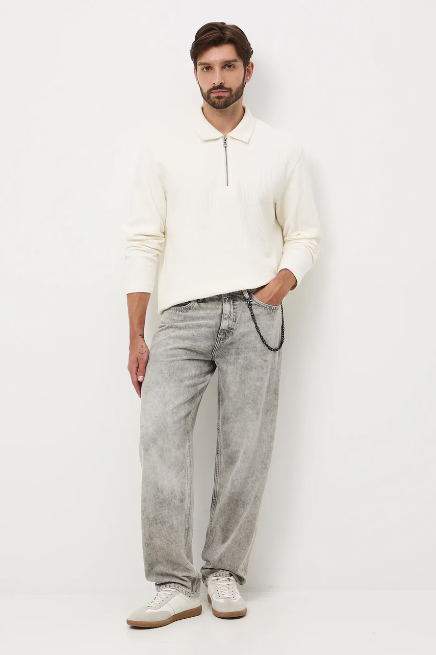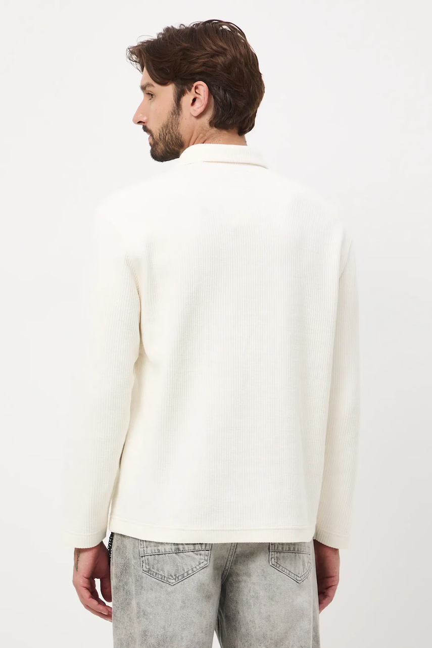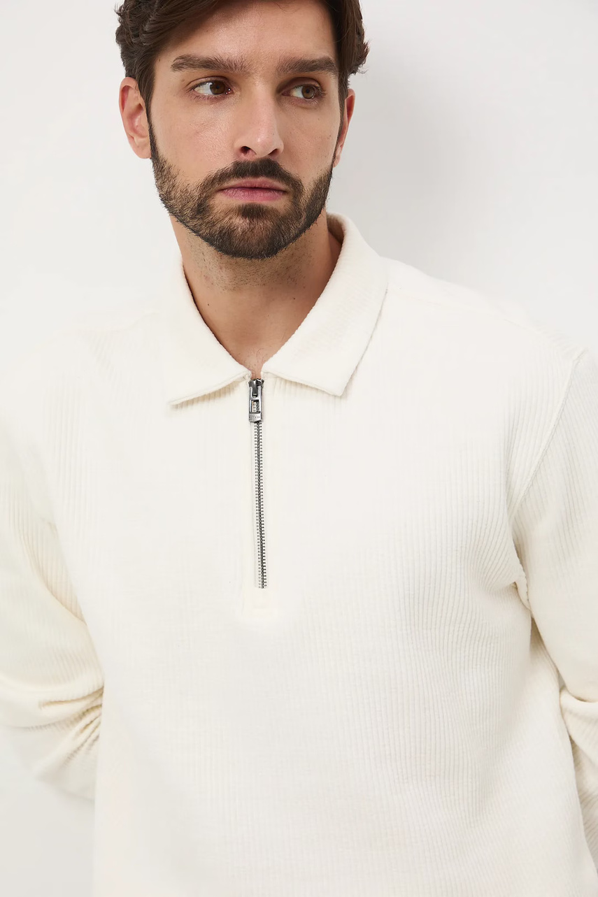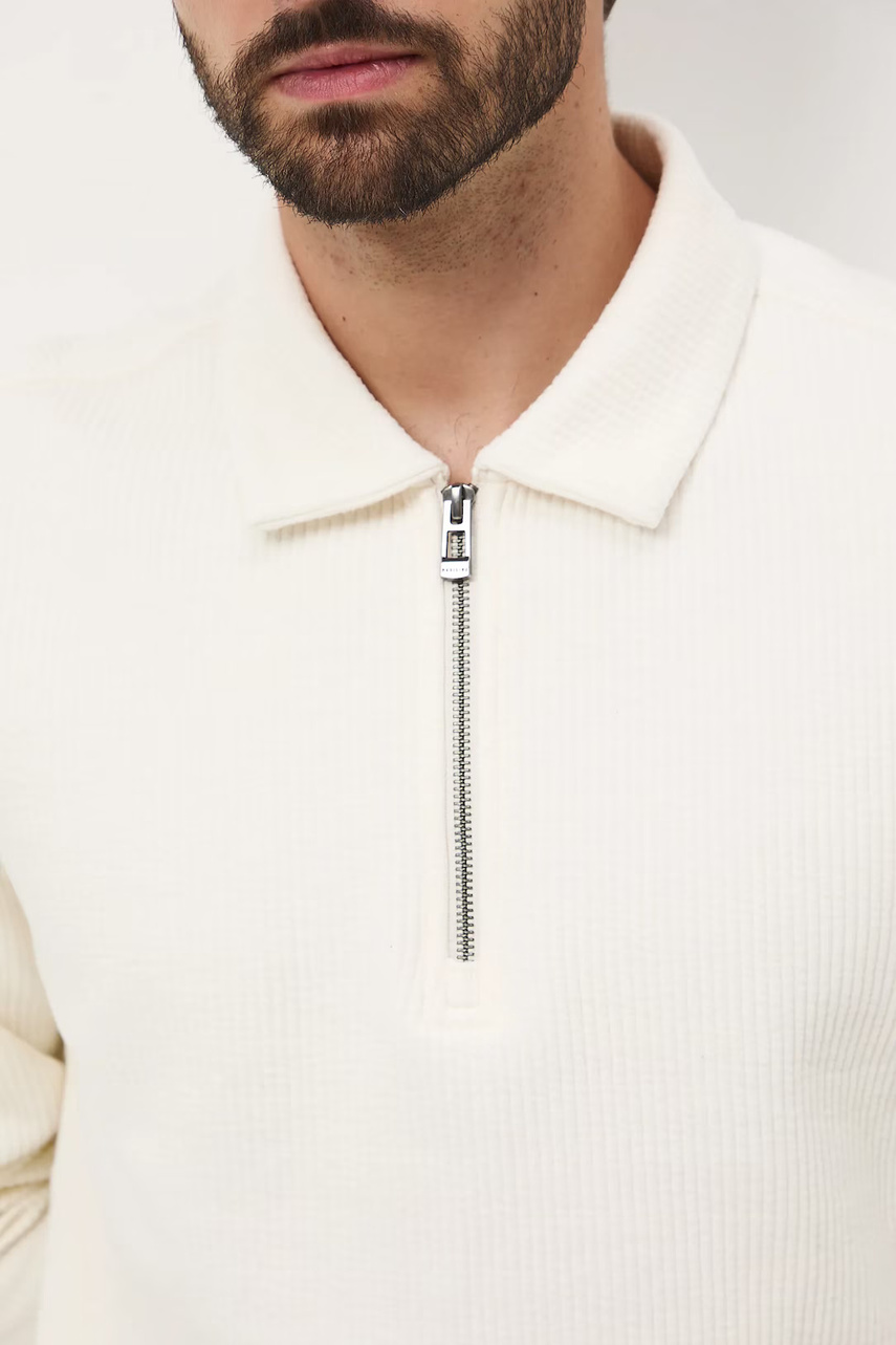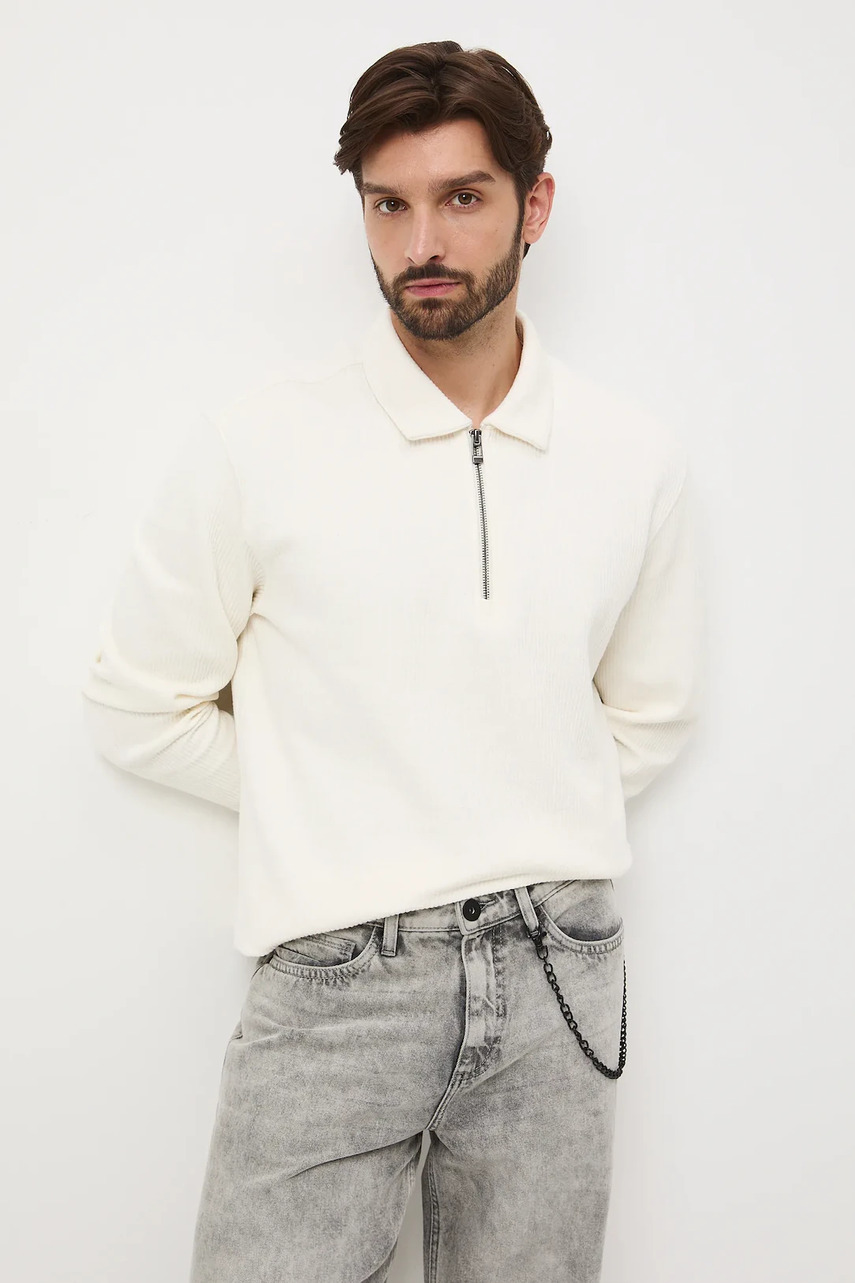 Фасон relaxed. - Довгий рукав. - Модель з коміром. - Коротка застібка на блискавці. - Фактурний матеріал.