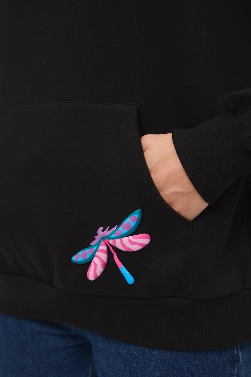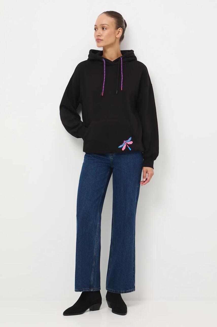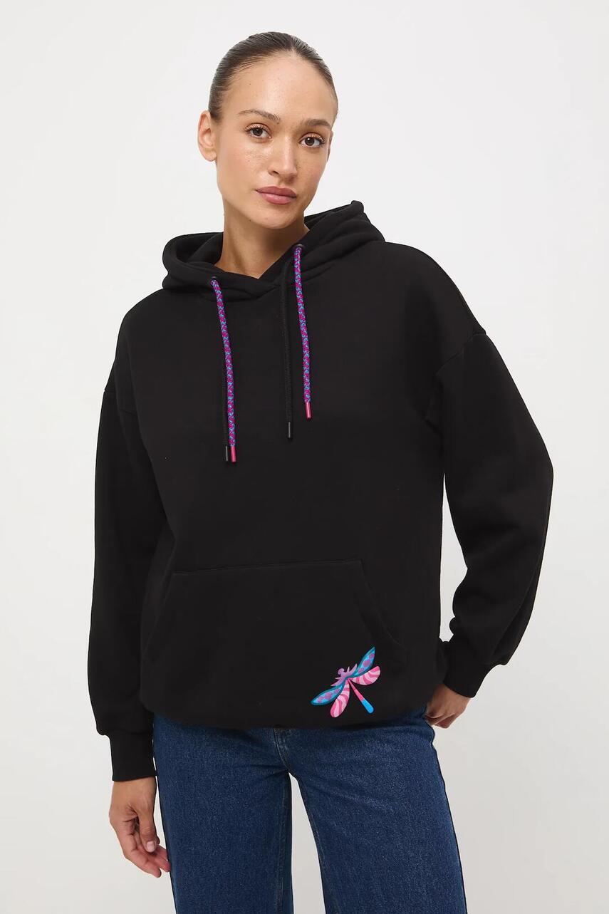 Фасон relaxed. - Довгий рукав. - Занижена лінія плечей. - Капюшон зі стягуванням. - Оздоблення у вигляді стяжки. - Практична накладна кишеня-кенгуру спереду. - Модель з декоративною аплікацією та принтом. - Принт з тваринним мотивом.