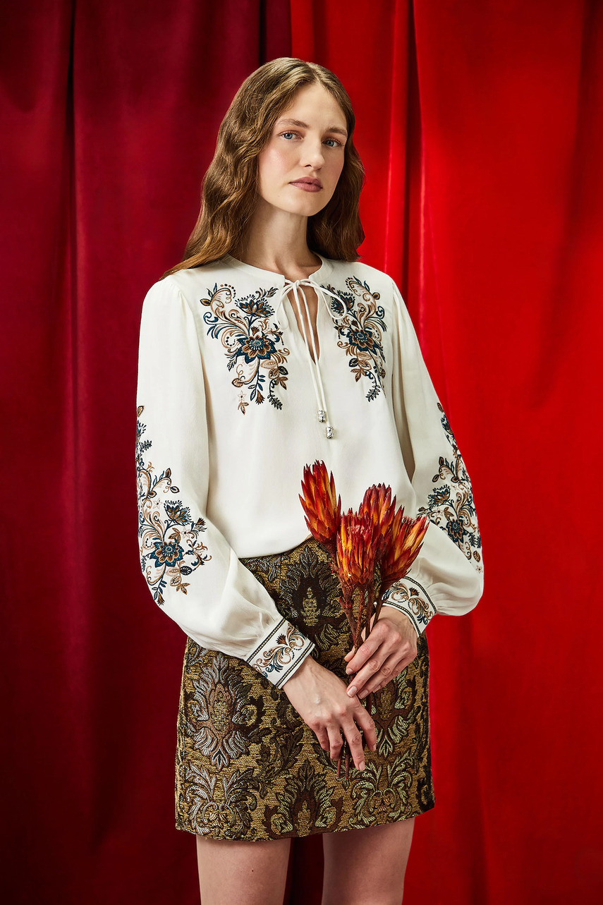 Блузка зі спеціальної колекції Королівський Замок на Вавелі x Medicine. Модель виконана з тканини з декоративною вишивкою.