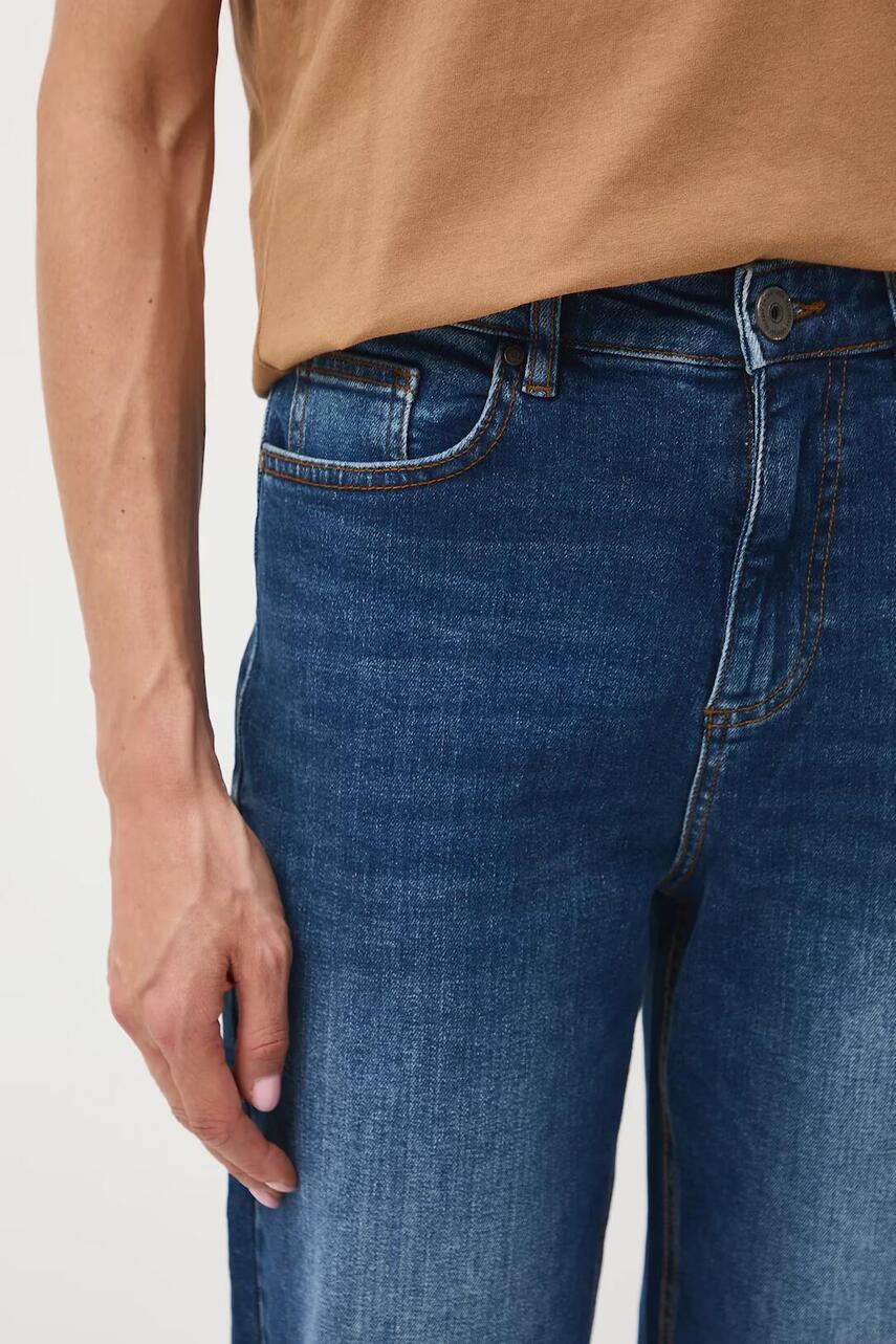 Модель із завищеною талією та застібкою на ґудзики і блискавку. - Прорізні кишені. - Контрастні шви. - Декоративні потертості.