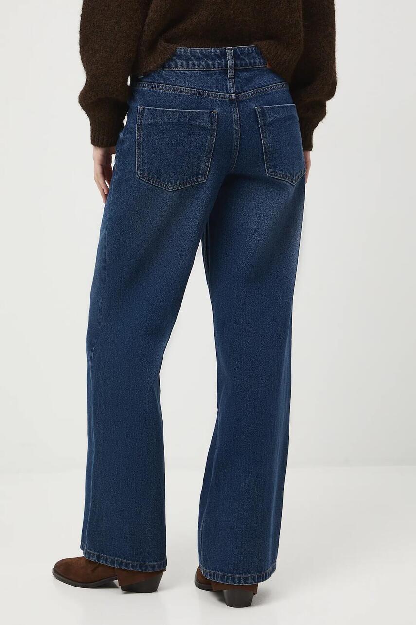 Модель із завищеною талією та застібкою на ґудзики і блискавку. - Широка штанина. - Денім з декоративними потертостями.