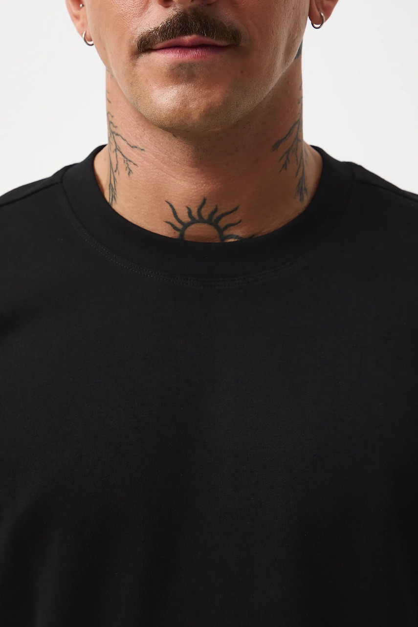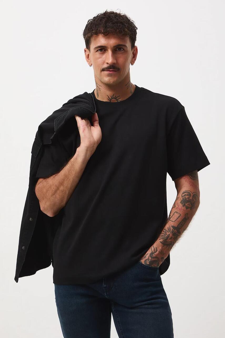 Фасон relaxed. - Короткий рукав. - Круглий виріз. - Бавовняний трикотаж interlock зі щільним переплетенням. - Гладкий трикотаж.