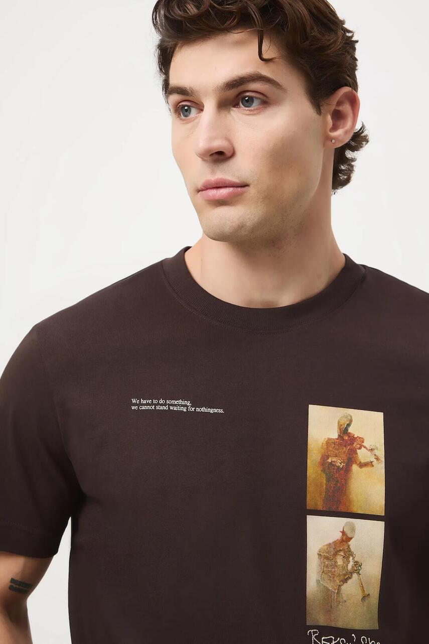 Крій regular. - Короткий рукав. - Круглий виріз. - Модель з принтом. - Принт з написом: We have to do something, we cannot stand waiting for nothingness.