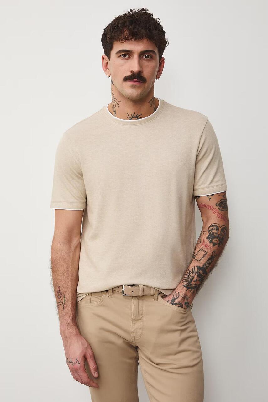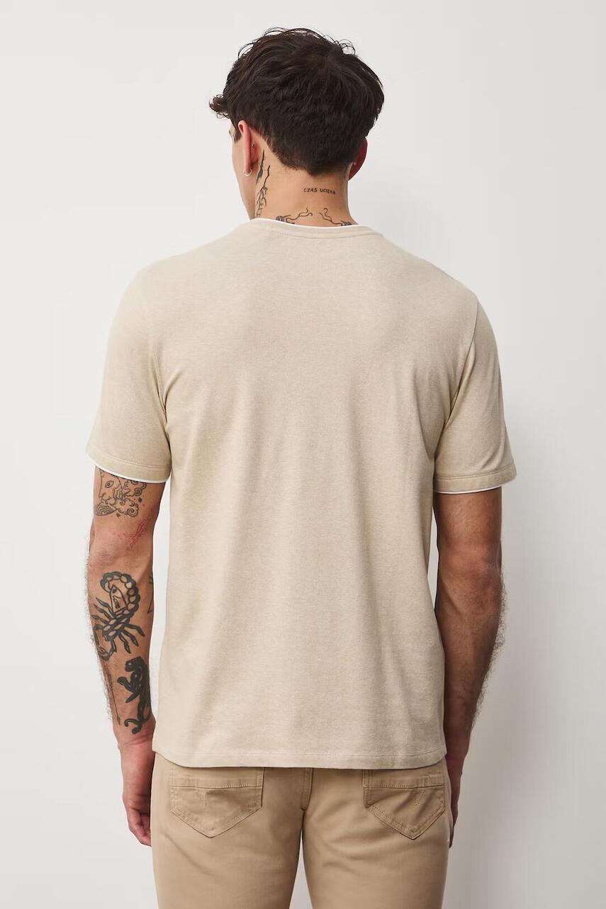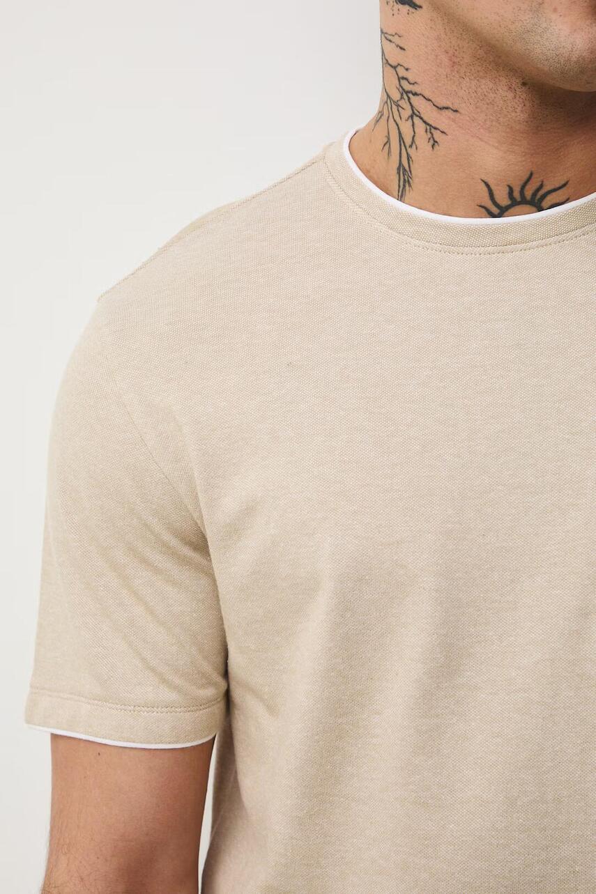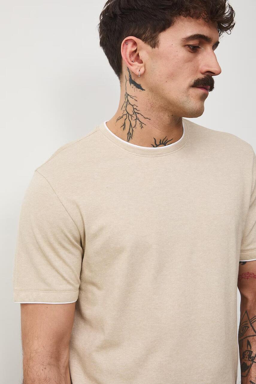 Крій regular. - Короткий рукав. - Круглий виріз. - Декоративне оздоблення. - Трикотаж меланж. - Модель виконана зі структурованого трикотажу.