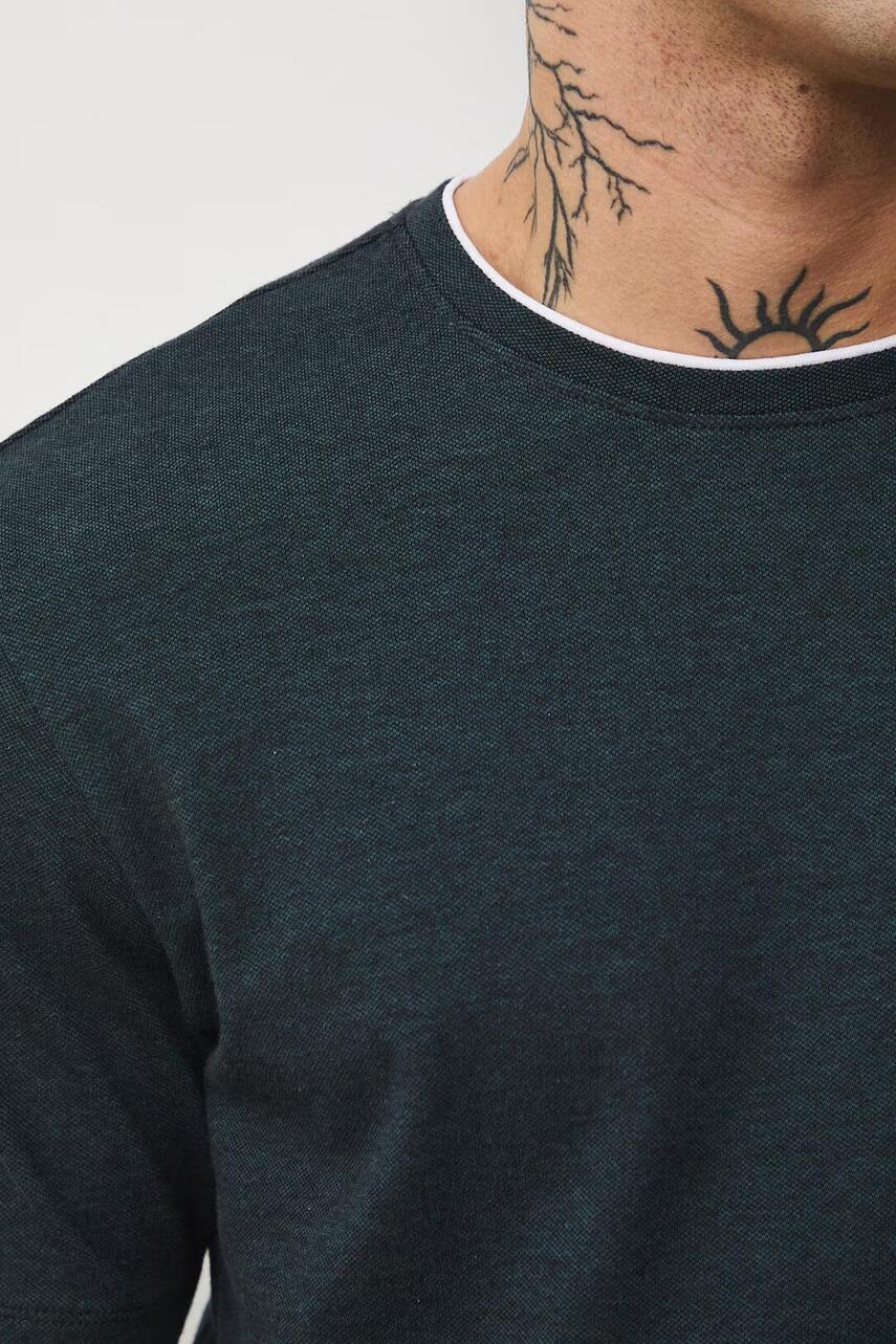 Крій regular. - Короткий рукав. - Круглий виріз. - Декоративне оздоблення. - Трикотаж меланж. - Модель виконана зі структурованого трикотажу.