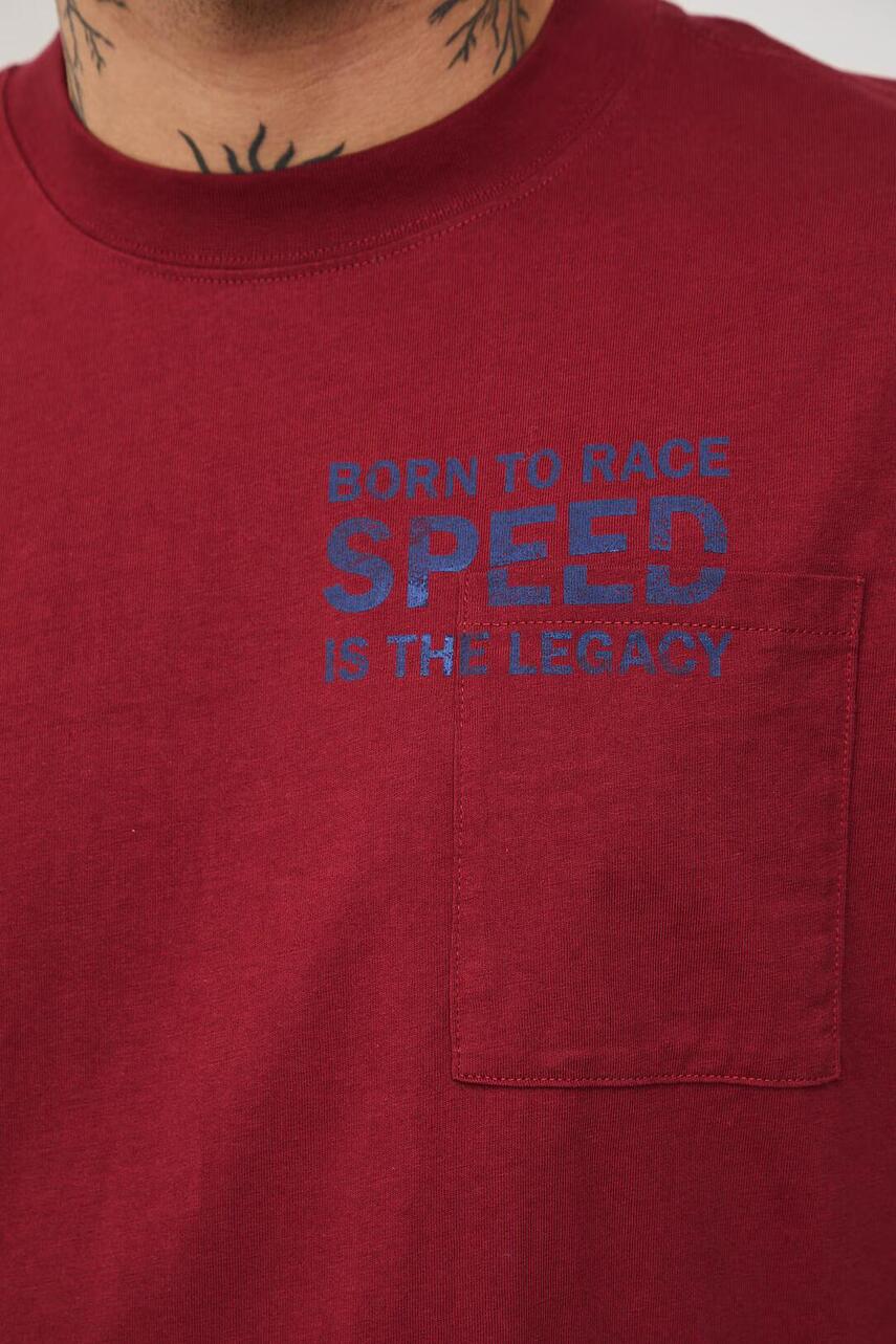 Фасон relaxed. - Короткий рукав. - Круглий виріз. - Модель з принтом. - На передній частині надрукований текст: born to race speed is the legacy.