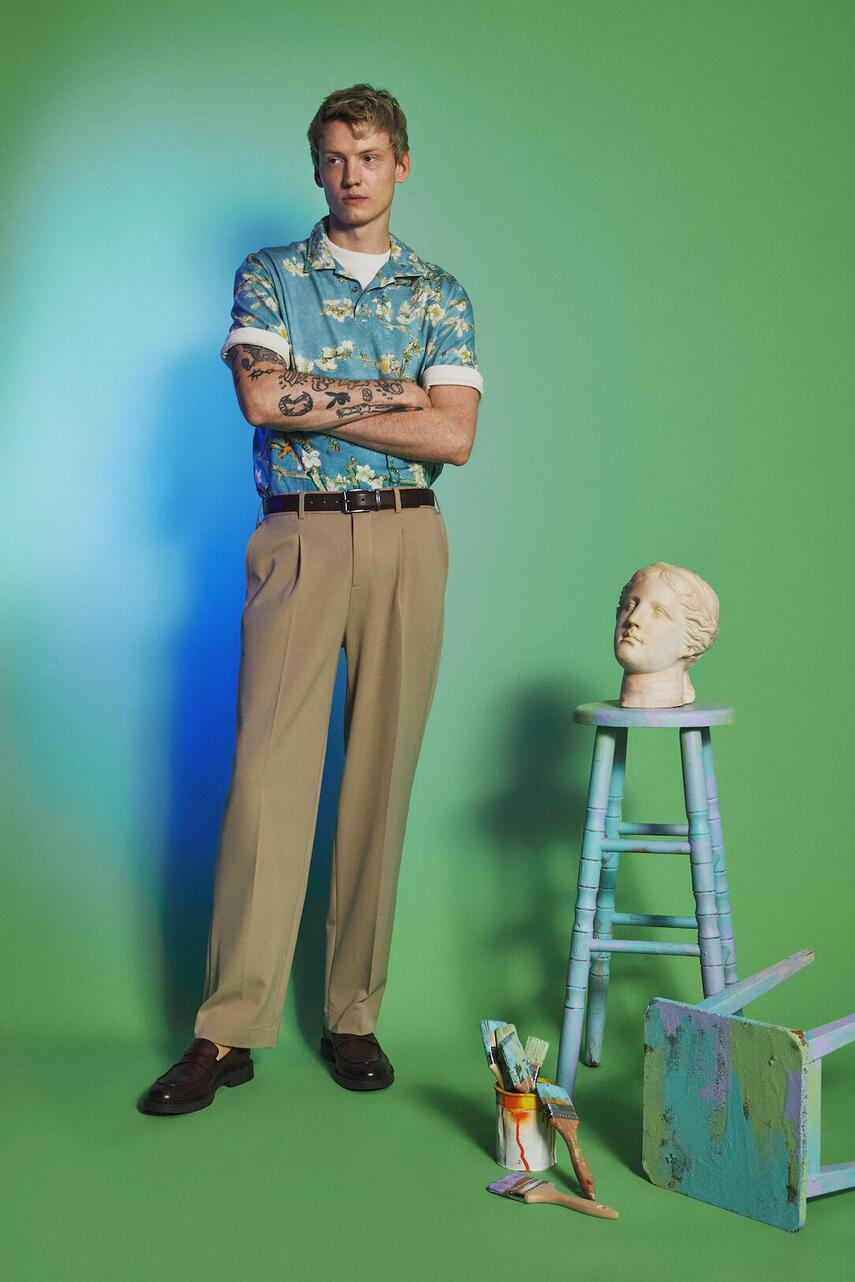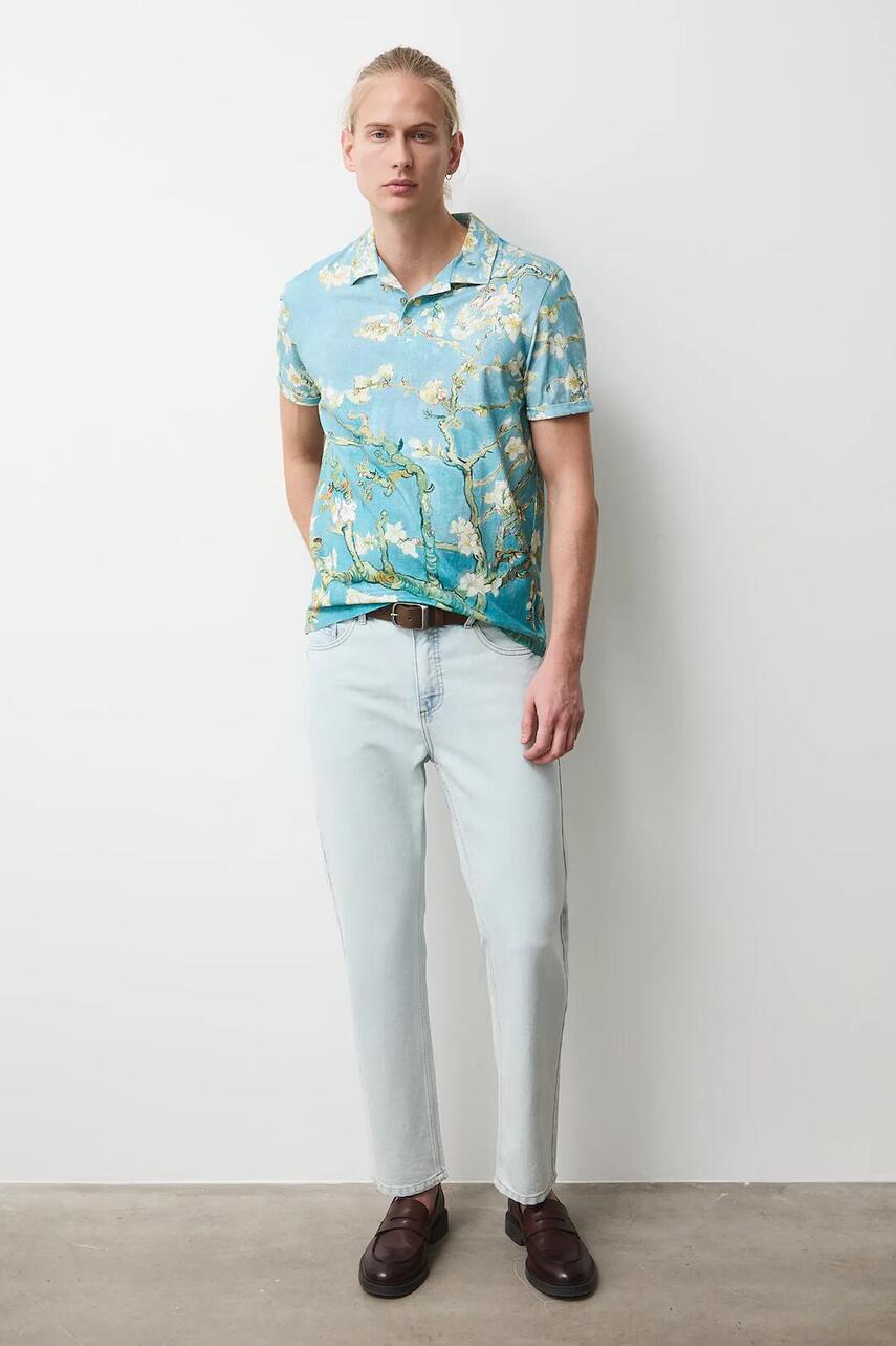 Крій regular. - Короткий рукав. - Модель з коміром. - Коротка застібка на ґудзиках. - Розташування візерунка може відрізнятися на кожному виробі.