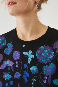 Крій regular. - Короткий рукав. - Круглий, ребристий виріз. - Модель з принтом. - Принт з квітковими та тваринними мотивами. - Модель з декоративною аплікацією з бісеру та страз. - Модель з декоративною аплікацією з паєток.