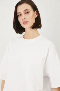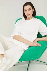 Крій oversize. - Короткий рукав. - Занижена лінія плечей. - Круглий, ребристий виріз. - Гладкий трикотаж.