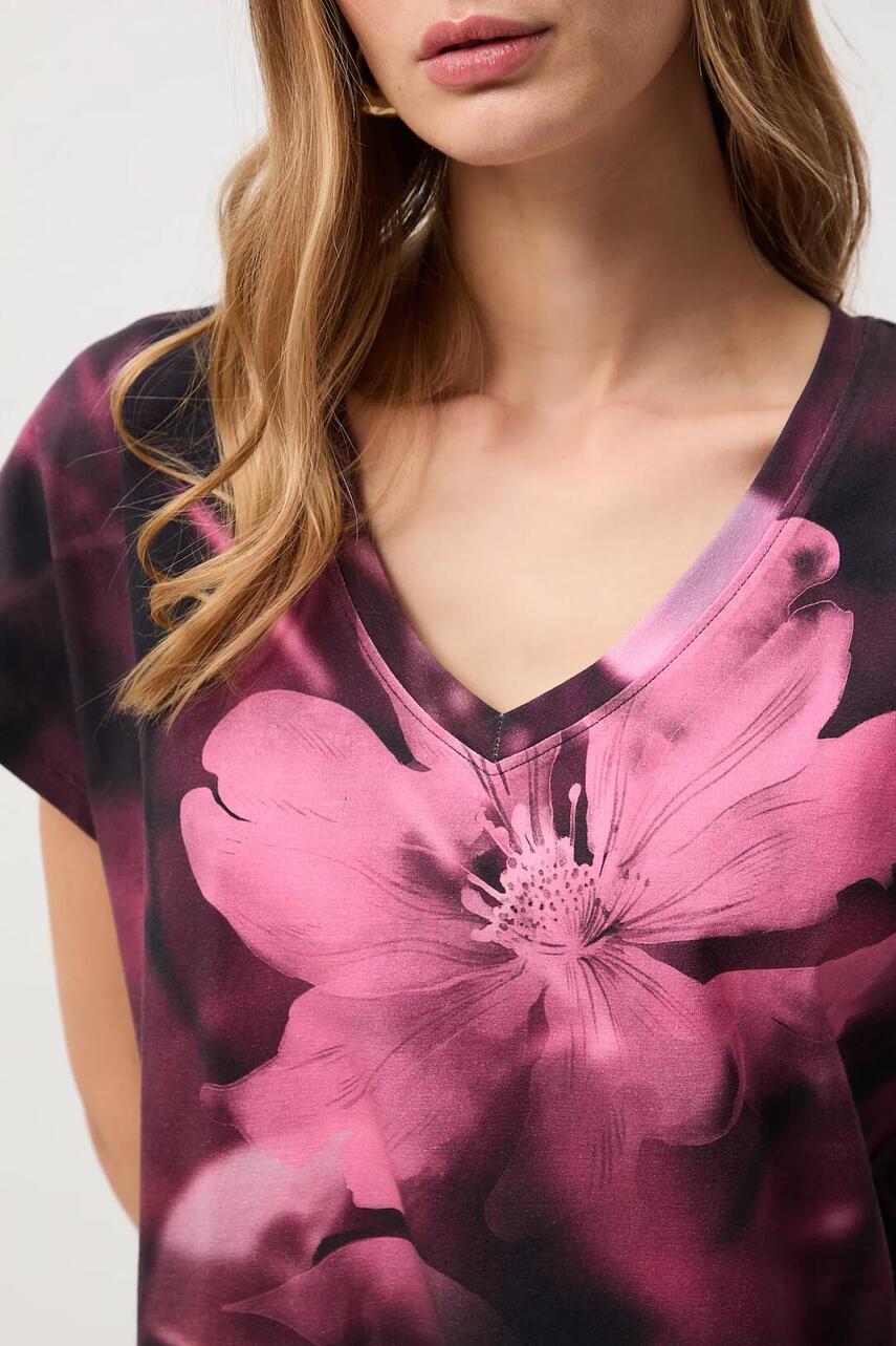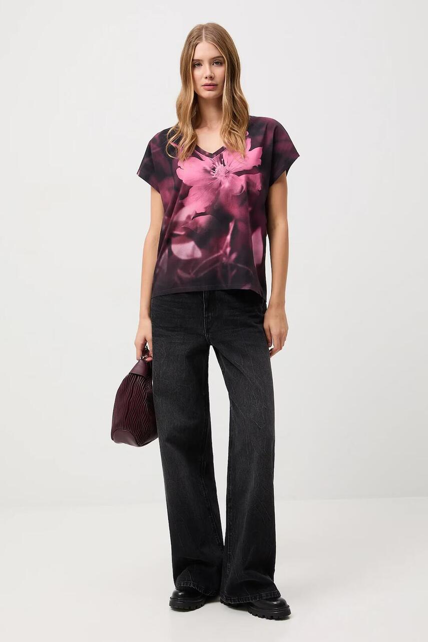 Крій oversize. - Короткий рукав-кімоно. - V-подібний виріз. - Квітковий візерунок.