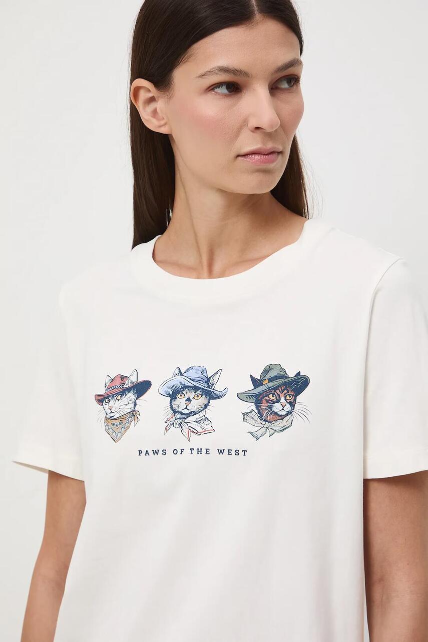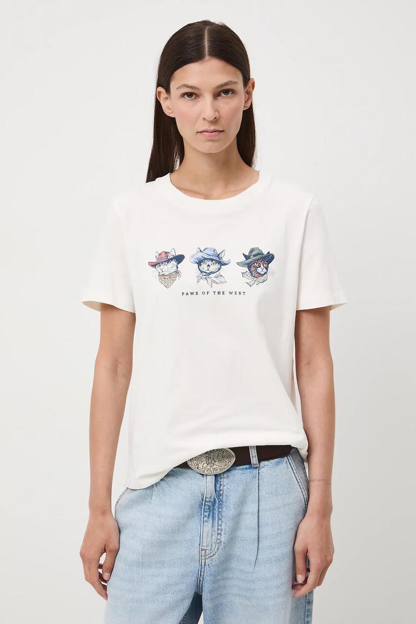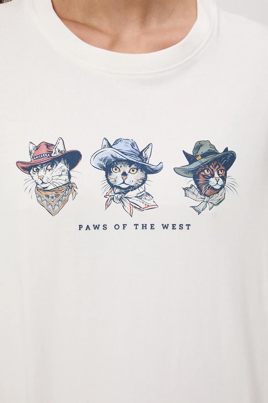 Крій regular. - Короткий рукав. - Круглий виріз. - Модель з принтом. - Принт з тваринним мотивом. - На передній частині надрукований текст: Paws of the west.