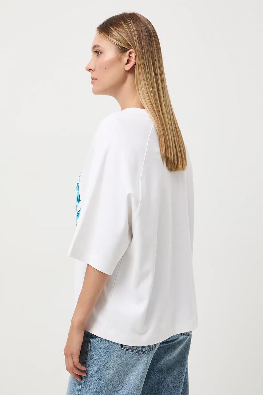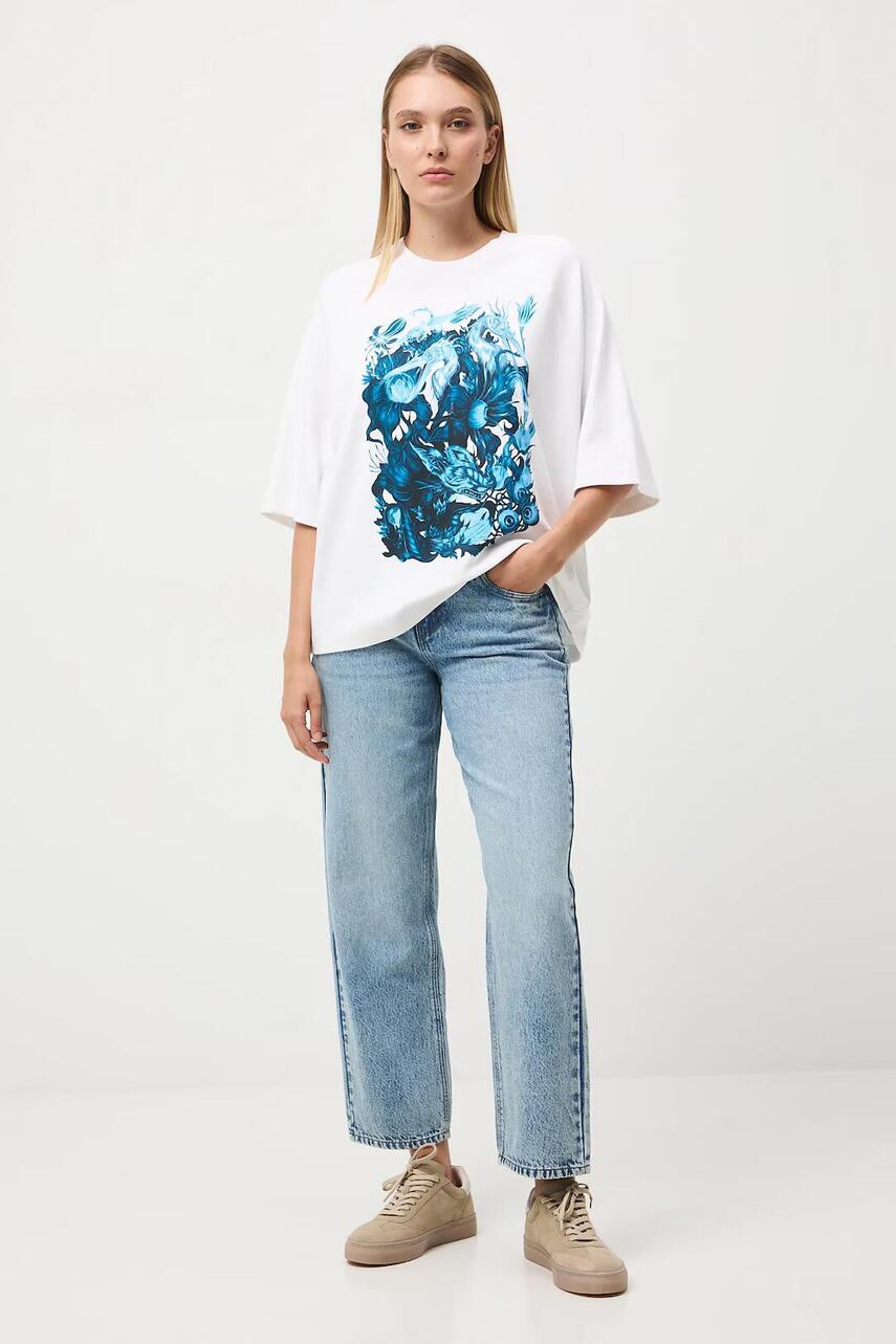 Крій oversize. - Короткий рукав-реглан. - Круглий виріз. - Модель з принтом на грудях.