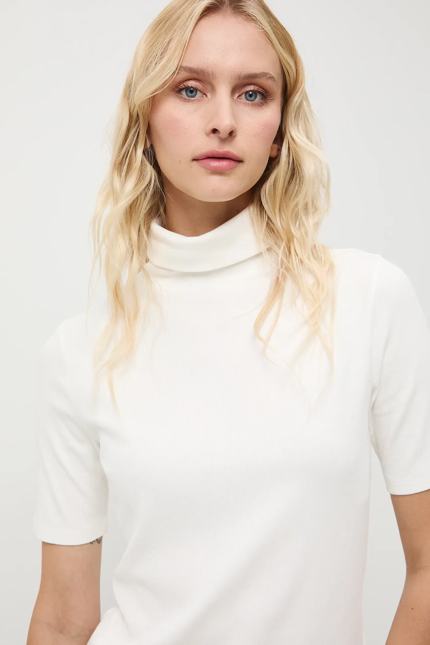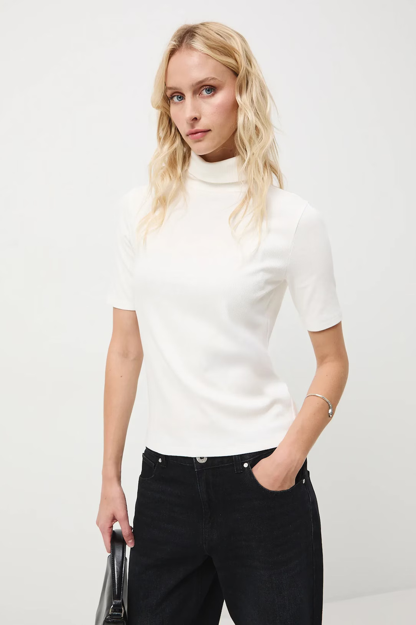 Крій slim. - Короткий рукав. - Модель з гольфом. - Трикотаж в рубчик. - Модель виконана з трикотажу з модалем.