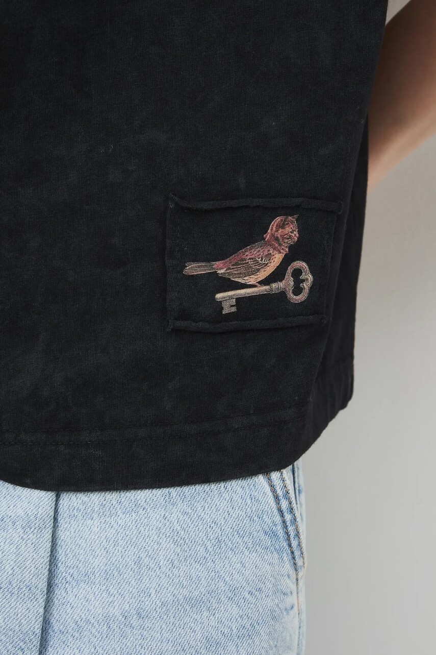 Футболка з колекції Medicine. Модель виготовлена з бавовняного трикотажу з принтом і аплікацією.