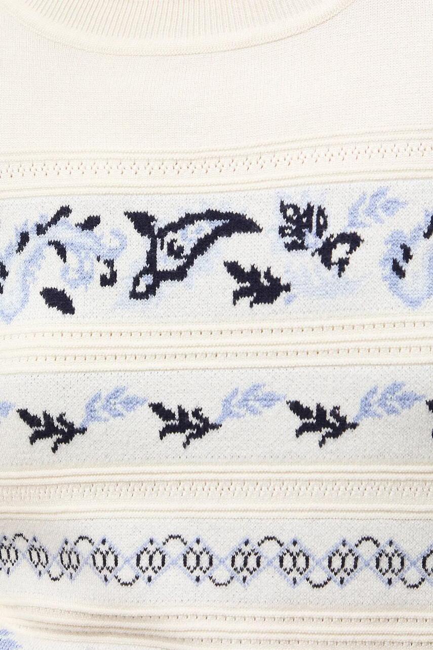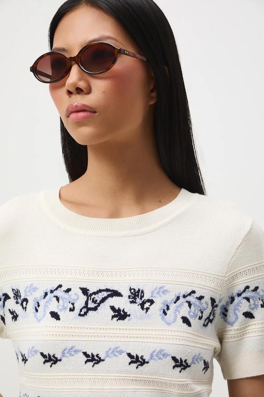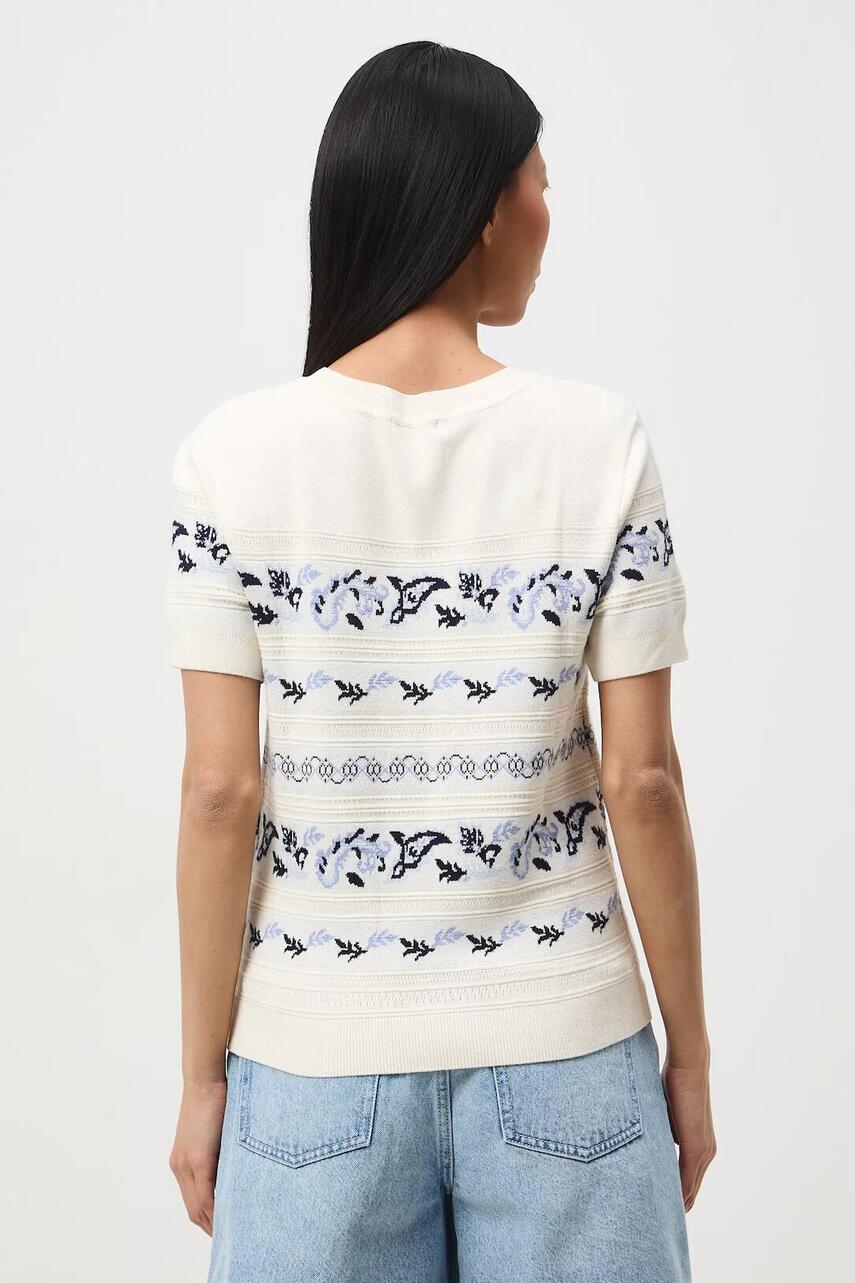 Крій slim. - Короткий рукав. - Круглий виріз. - Декоративні вставки. - Візерунчастий жакардовий трикотаж.