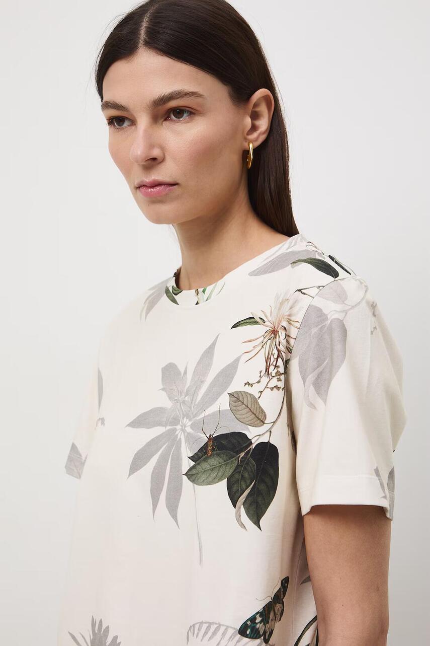 Крій: regular fit. - Короткий рукав. - Круглий виріз. - Візерунок з рослинним мотивом. - Бавовняний трикотаж сингл-джерсі.