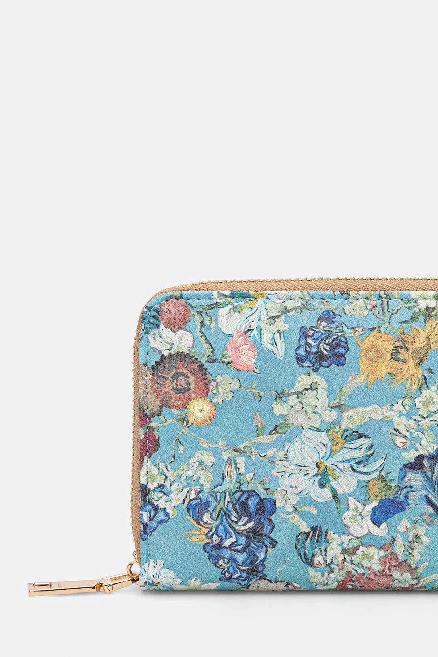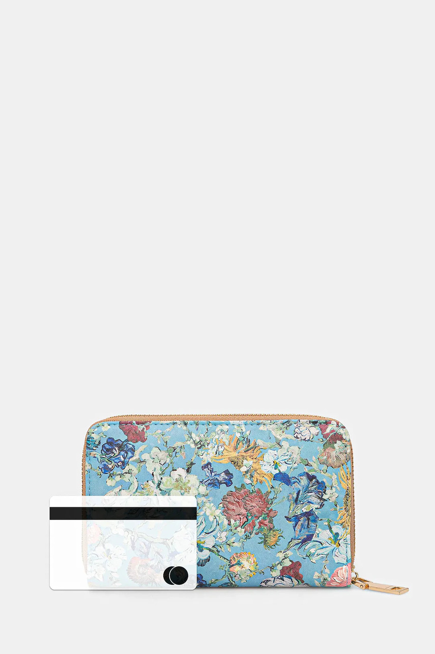Застібається на блискавку. - Відсіки для карт. - Відділення для купюр. - Кишеня для монет застібається на блискавку. - Матове покриття. - Квітковий візерунок.