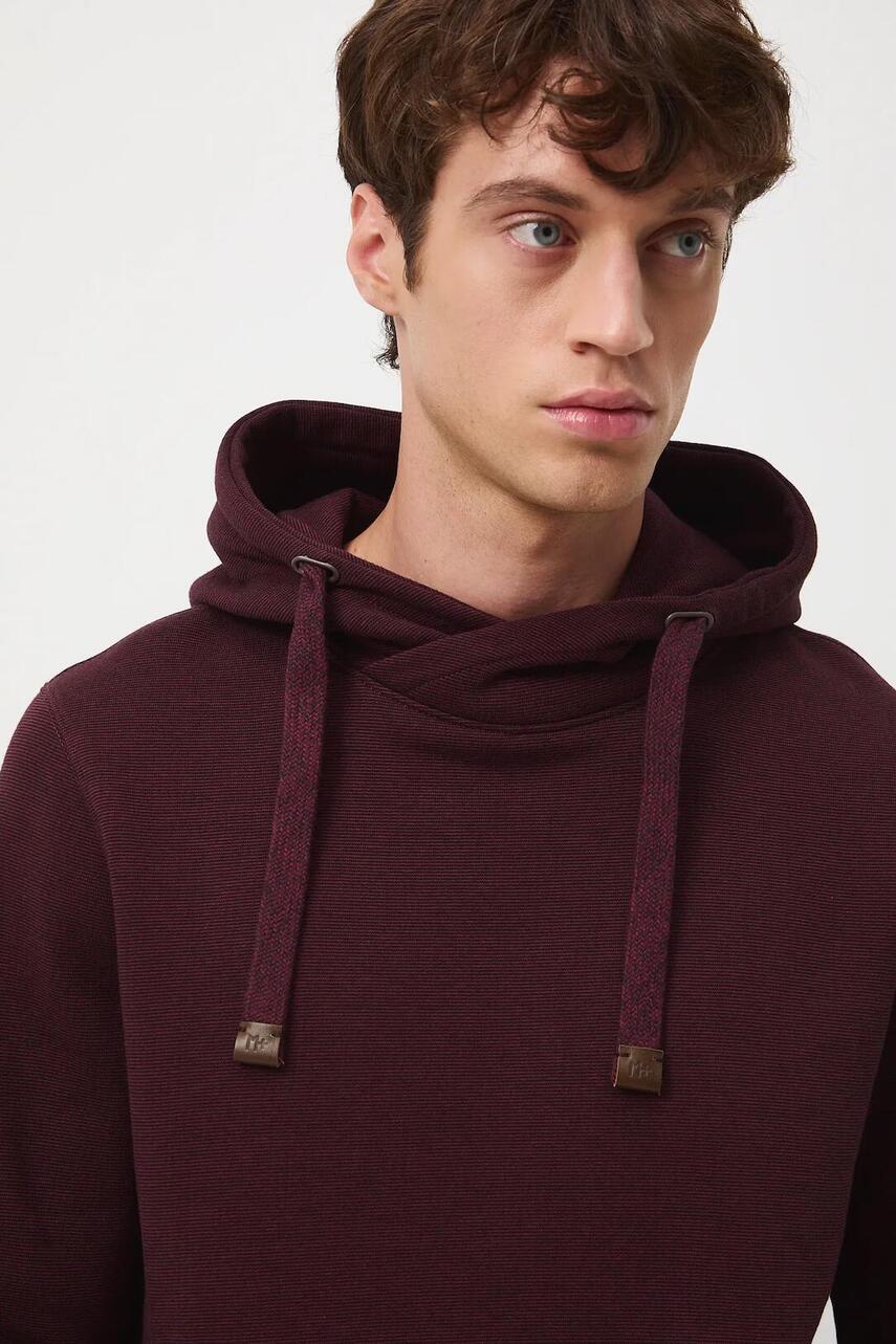 Крій regular. - Довгий рукав. - Капюшон зі стягуванням. - Дві прорізні бічні кишені. - Оздоблення у вигляді стяжки. - Трикотаж з дрібним візерунком. - Трикотаж меланж.