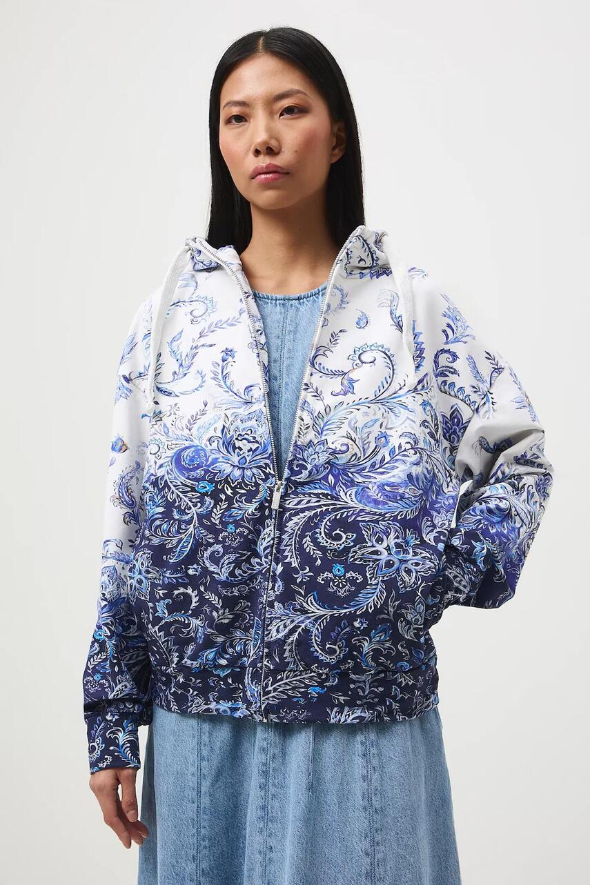 Крій relaxed fit. - Довгий рукав. - Занижена лінія плечей. - Регульований капюшон. - Оздоблення у вигляді стяжки. - Візерунок пейслі.
