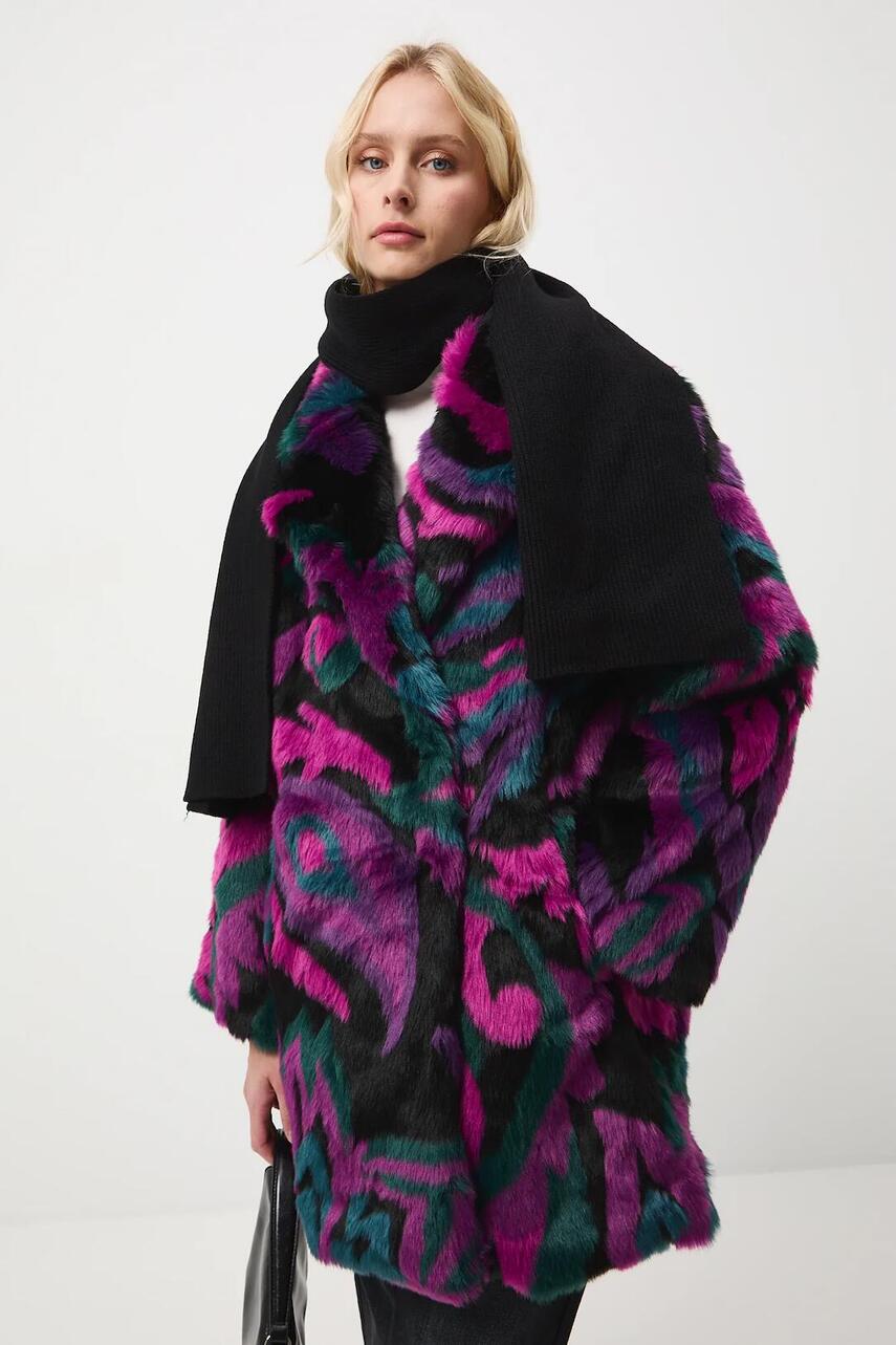 Крій oversize. - Довгий рукав. - Застібка на кнопки. - Прорізні кишені. - Модель на підкладці. - Розташування візерунка може відрізнятися на кожному виробі.