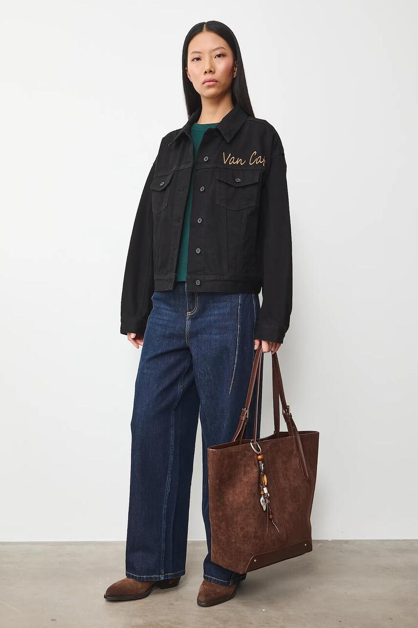 Крій oversize. - Довгий рукав. - Занижена лінія плечей. - Манжети на ґудзиках. - Застібається на гудзики. - Ширину можна регулювати за допомогою нижніх ґудзиків. - Дві нагрудні кишені на кнопках. - Декоративне прострочування. - Модель з принтом на спині. - Модель з декоративною вишивкою.