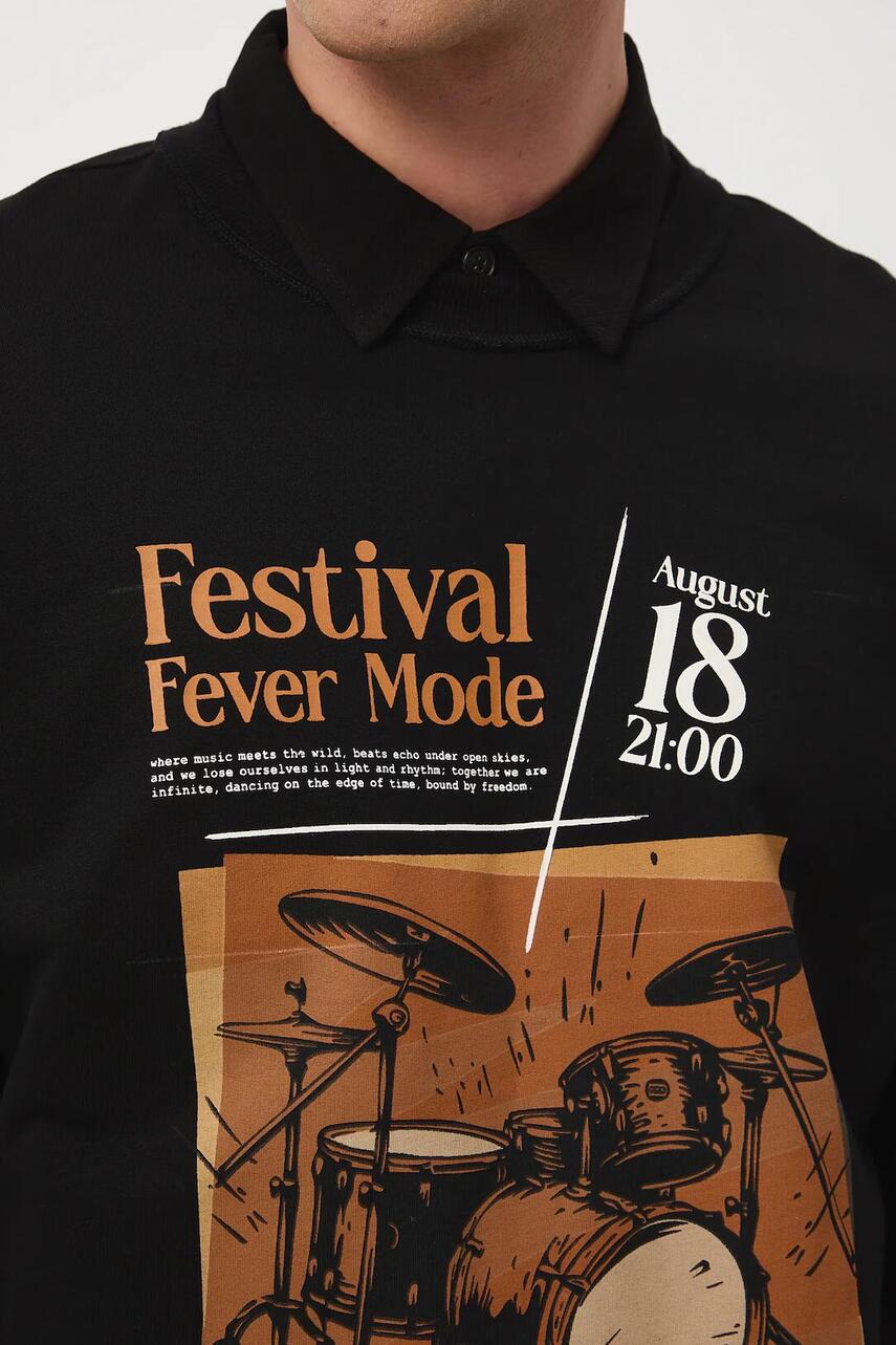 Вільний фасон. - Довгий рукав. - Занижена лінія плечей. - Круглий виріз. - Модель з принтом. - На передній частині надрукований текст: Festival Fever Mode.