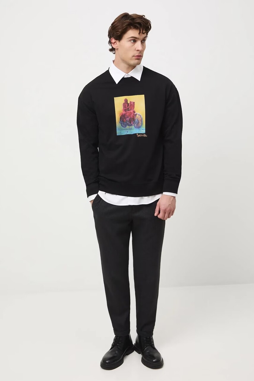 Крій regular. - Довгий рукав. - Занижена лінія плечей. - Круглий, ребристий виріз. - Оздоблення у вигляді стяжки. - Модель з принтом на грудях та спині. - На задній частині надрукований текст: nothing is happening. - Модель виготовлена з трикотажу типу french terry.