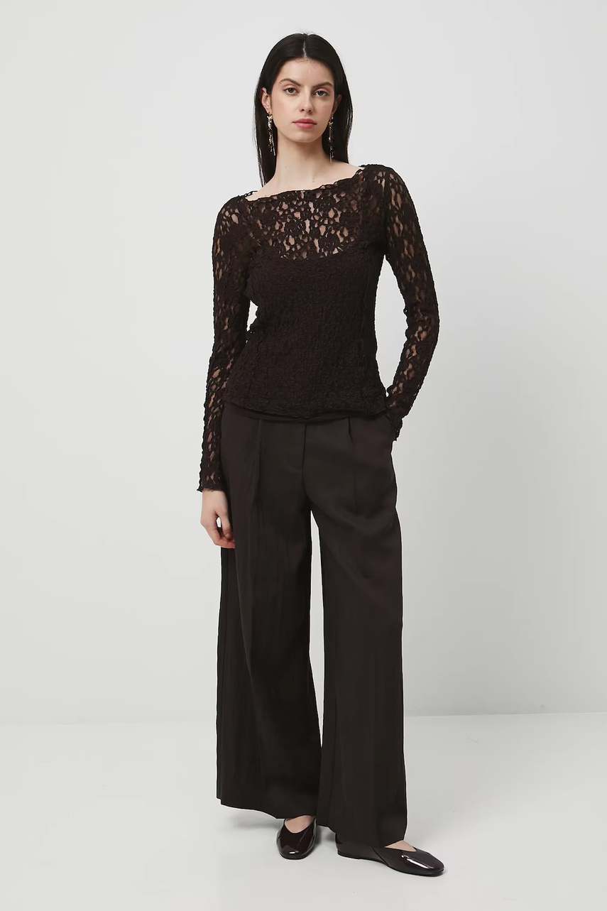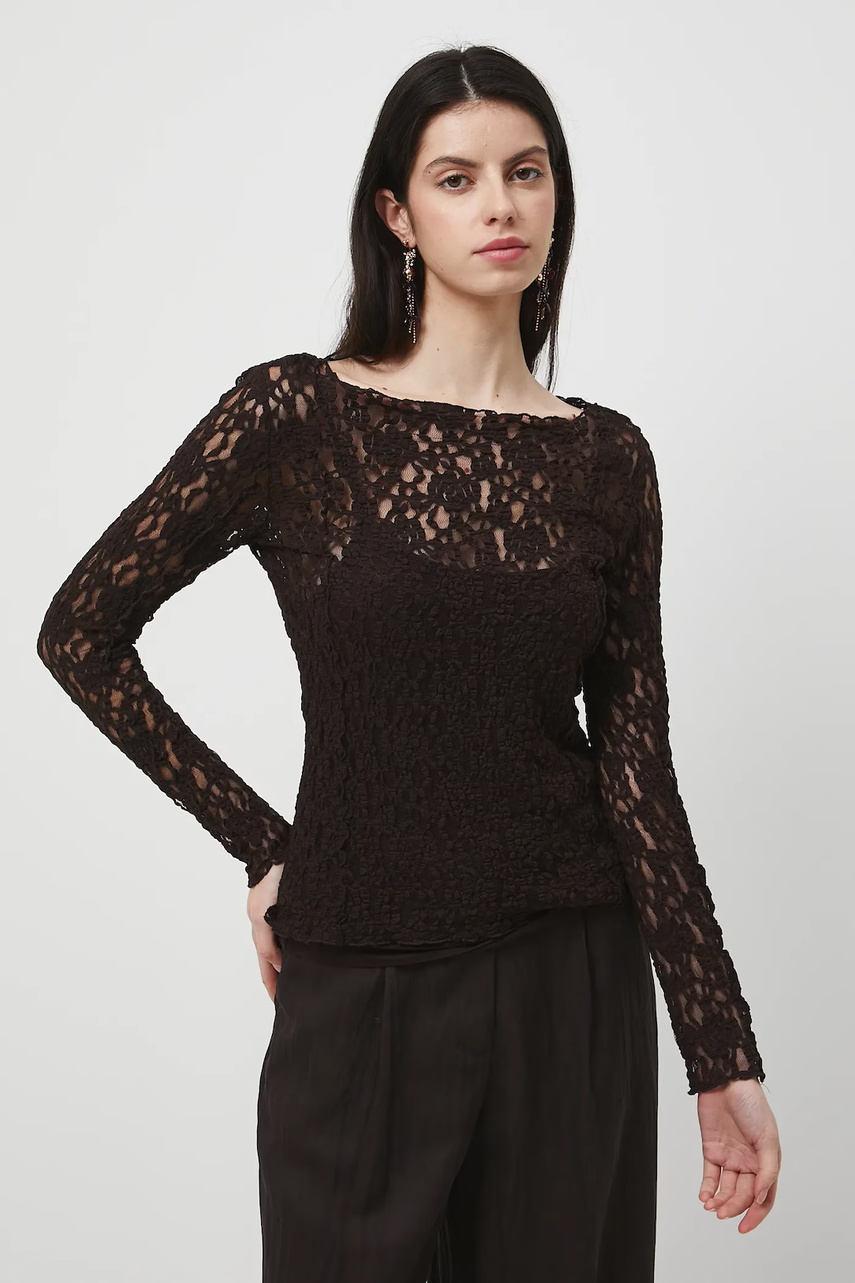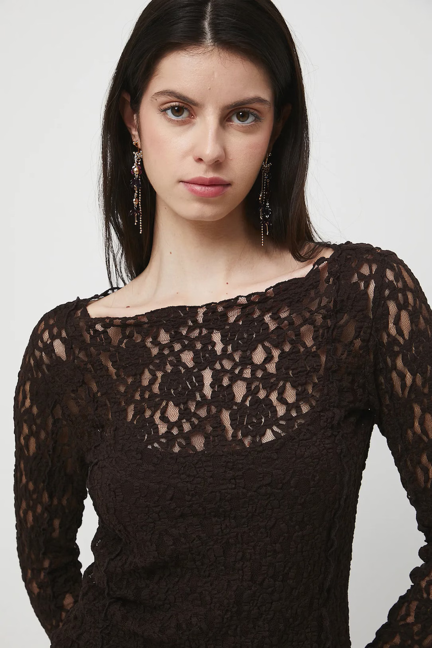 Фасон slim fit. - Довгий рукав. - Вирз-човник. - Модель виготовлена з мереживного матеріалу.