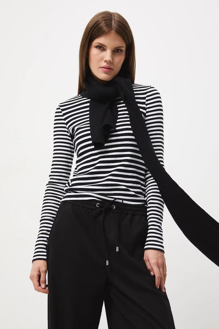 Фасон slim fit. - Довгий рукав. - Круглий виріз. - Смугастий візерунок.