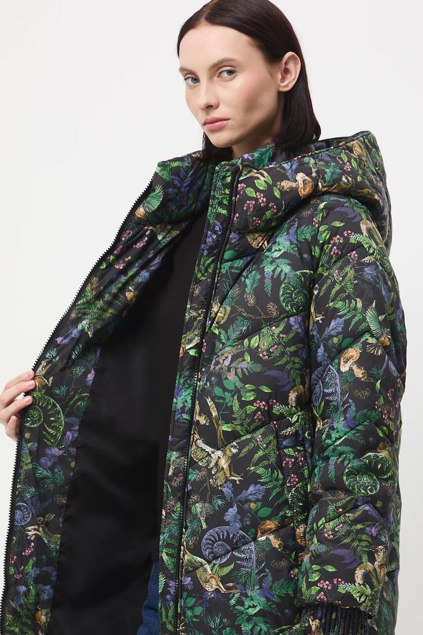 Пальто з колекції Medicine. Утеплена модель виготовлена з принтованого стебнованого матеріалу.