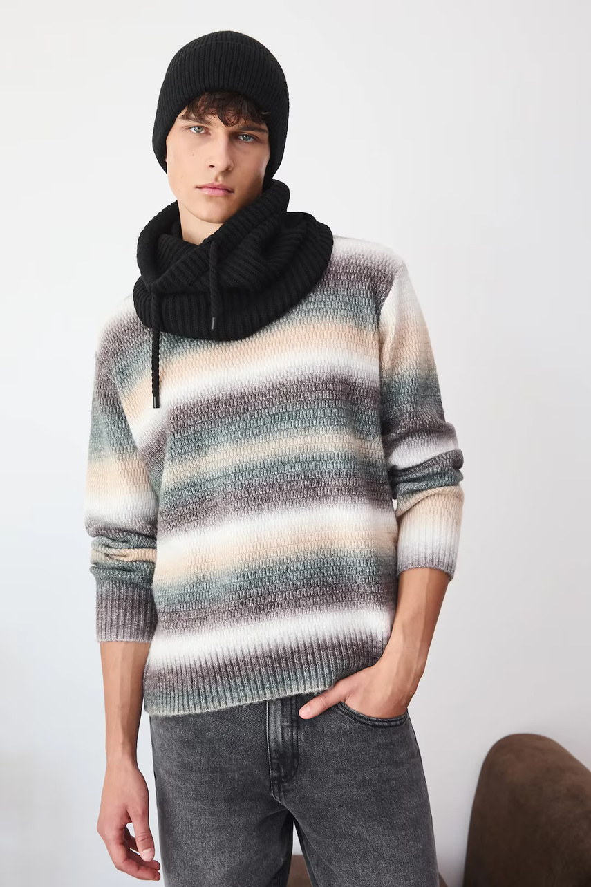 Край з відворотом. - Трикотаж в рубчик. - Декоративна деталь спереду. - Трикотаж меланж.