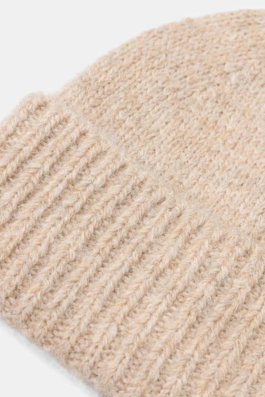 Модель beanie. - Товстий трикотаж з домішкою вовни. - Край з відворотом. - Трикотаж меланж.
