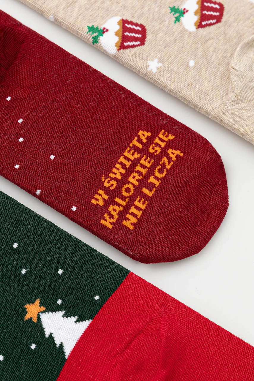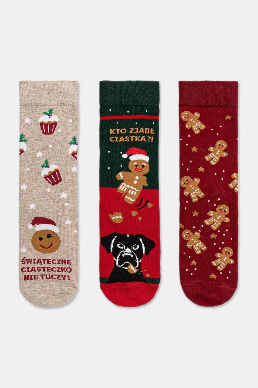 Зроблено в Польщі. - Кількість пар у наборі: 3. - Модель з написом: Kto zjad? ciastka?! ?wi?teczne ciasteczko nie tuczy! - Святкова тематика. - Шкарпетки упаковані в декоративну коробку.