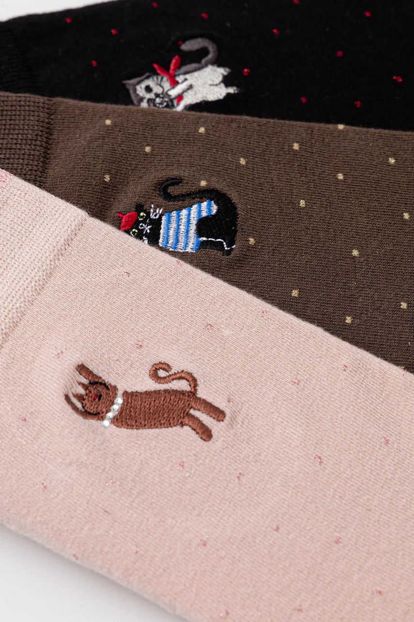 Кількість пар у наборі: 3. - Модель з декоративною вишивкою. - Вишивка з анімалістичними мотивами.