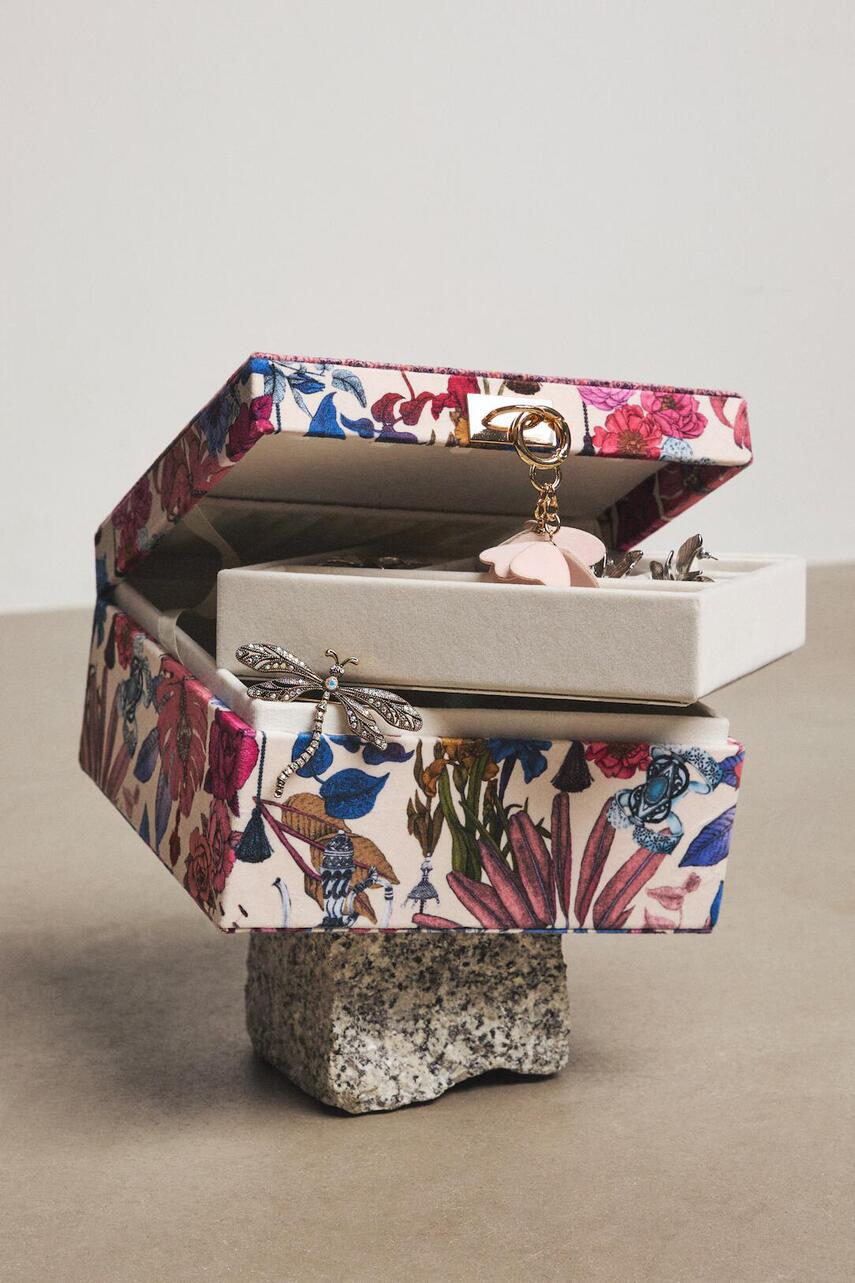 Шкатулка для прикрас зі спеціальної колекції Ilona Tambor x Medicine. Модель виконана з принтованого велюрового матеріалу.