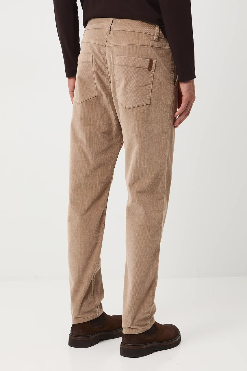 Фасон chino. - Для штанів характерні косі кишені - вони ідеально вписуються в стиль smart casual. - Модель із регулярною талією та застібкою на ґудзики і блискавку. - Прорізні кишені.