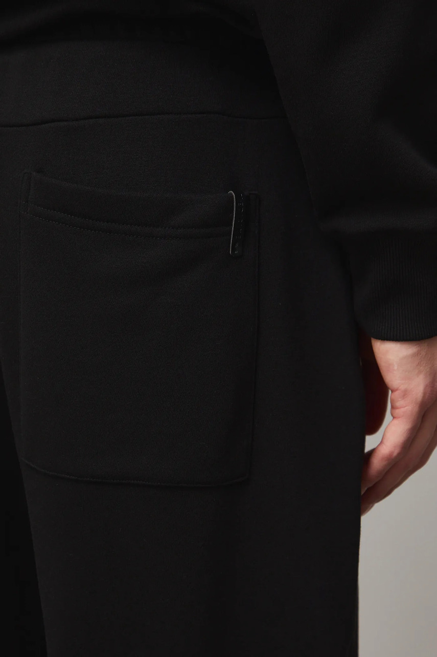 Фасон jogger. - Талія regular. - На талії гумка зі шнуровкою. - Дві бічні кишені на блискавці. - Накладна кишеня на сідниці. - Штанини оздоблені резинкою. - Декоративні деталі. - Гладкий трикотаж.