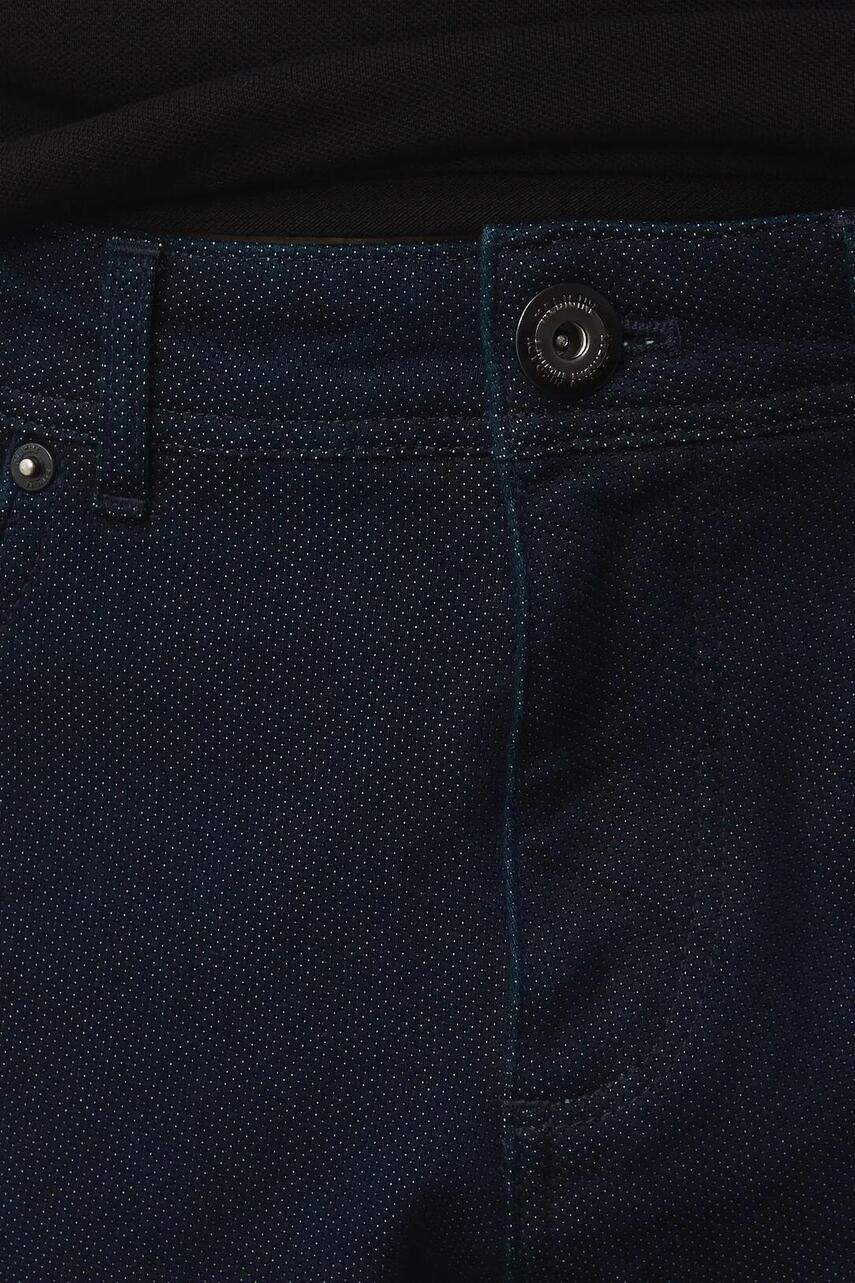 Крій regular. - Модель із регулярною талією та застібкою на ґудзики і блискавку. - Прорізні кишені. - Модель виконана з тканини з переплетенням dobby, яка характеризується тонкими тканими візерунками і витонченою текстурою.