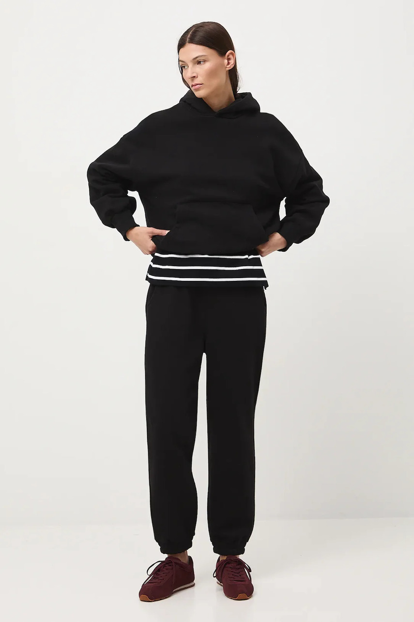 Крій regular. - Талія regular. - На талії гумка зі шнуровкою. - Штанини оздоблені резинкою. - Прорізні кишені. - Гладкий трикотаж.