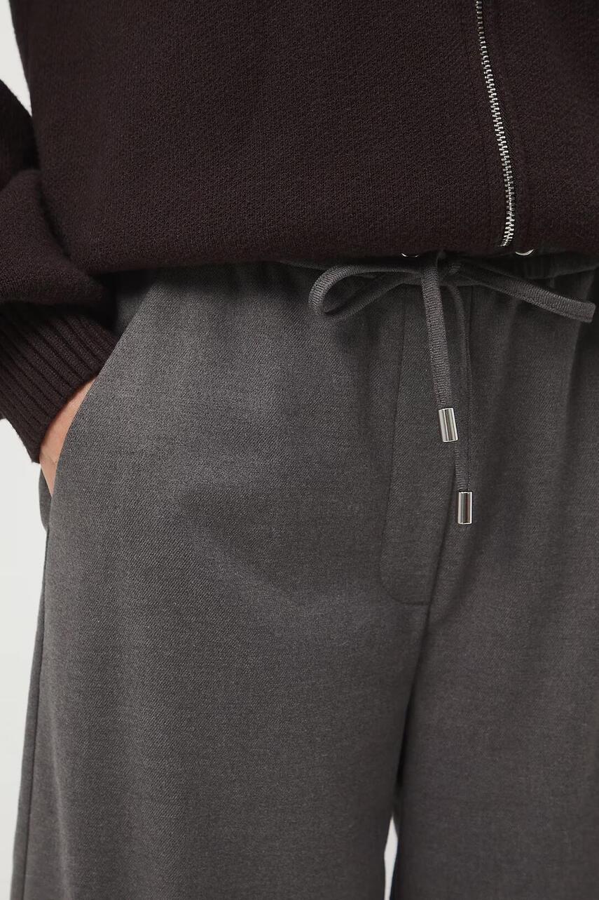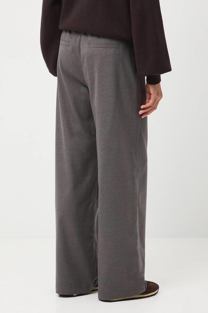 Фасон: wide leg. - Талія regular. - На талії гумка зі шнуровкою. - Дві прорізні бічні кишені. - Широка штанина. - Меланжева тканина.