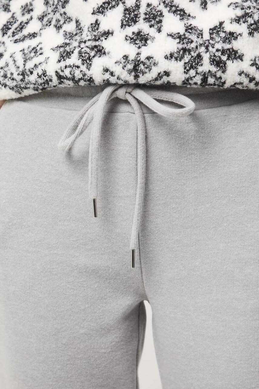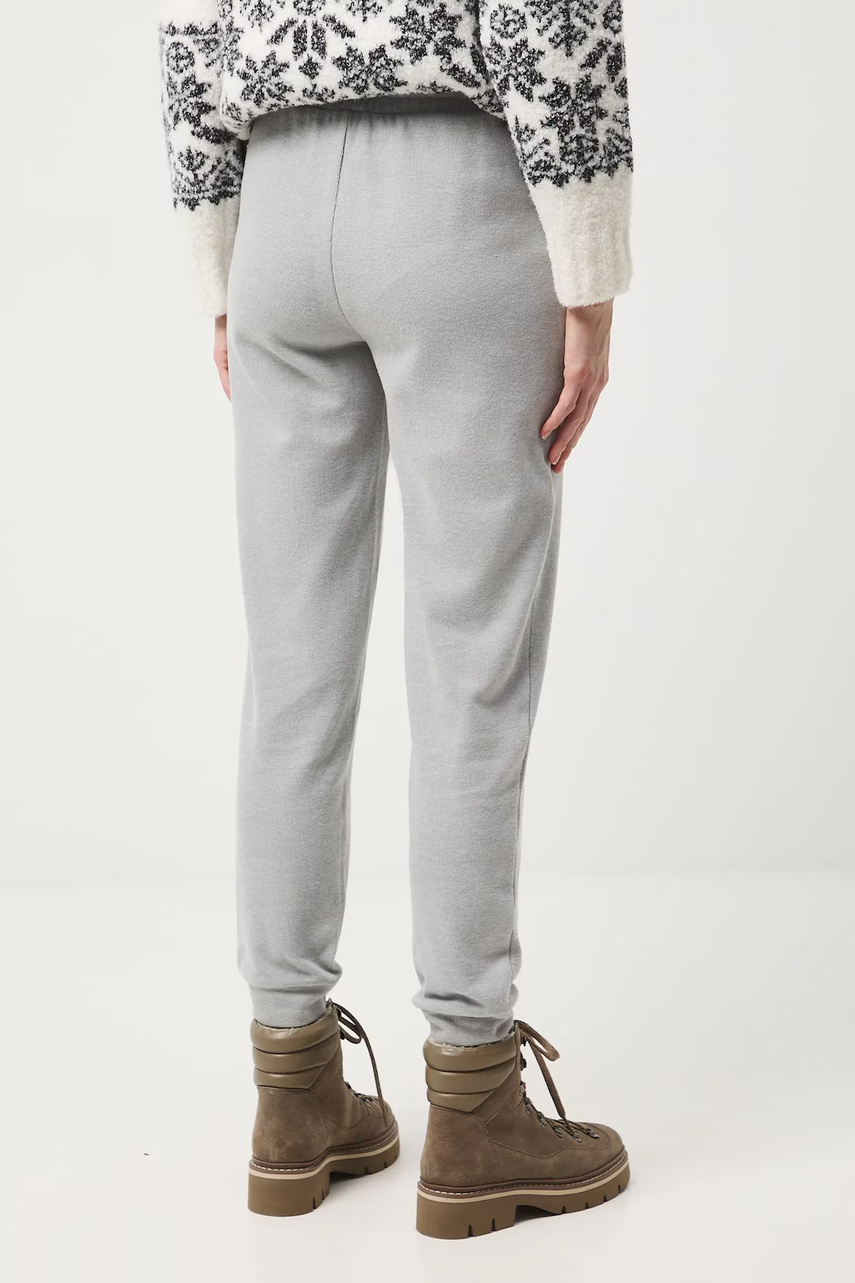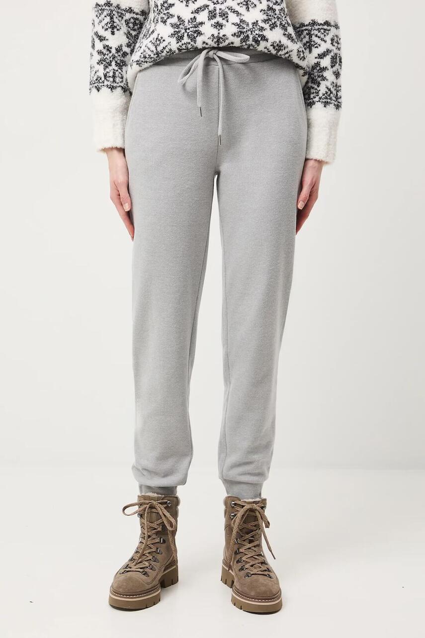 Крій regular. - Талія regular. - На талії гумка зі шнуровкою. - Прорізні кишені. - Штанини оздоблені резинкою. - Трикотаж меланж.
