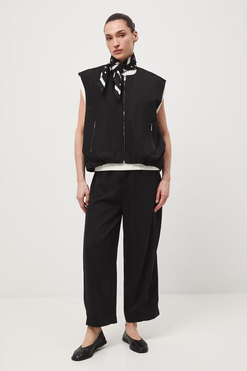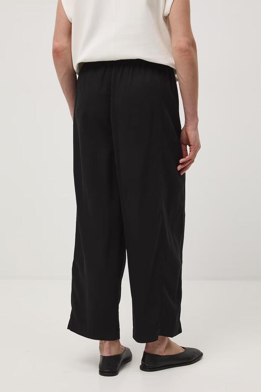 Фасон slouchy. - Завищена талія. - На талії гумка зі шнуровкою. - Дві прорізні бічні кишені. - Гладка тканина. - Модель виготовлена з ліоцелу.