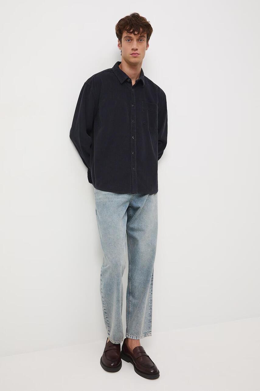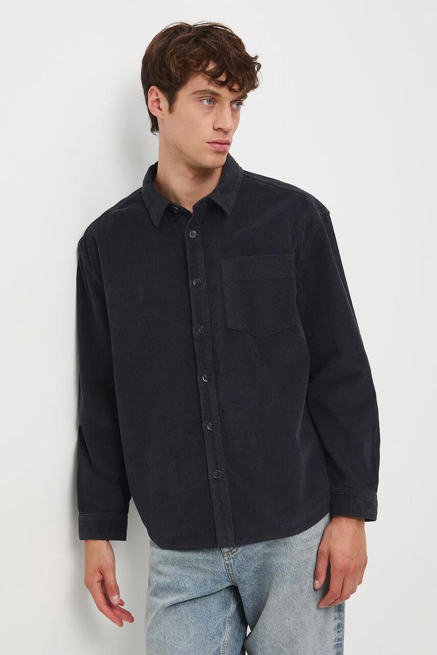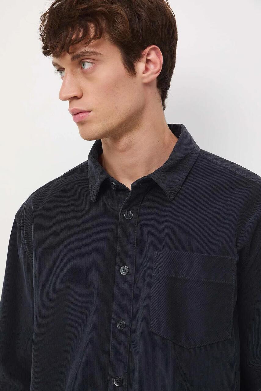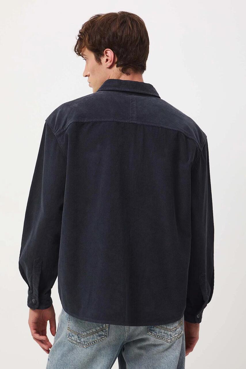 Крій oversize. - Довгий рукав. - Занижена лінія плечей. - Манжети на ґудзиках. - Класичний, злегка ущільнений, комір kent. - Застібається на гудзики. - Накладна нагрудна кишеня. - Модель виконана з вельветового матеріалу.