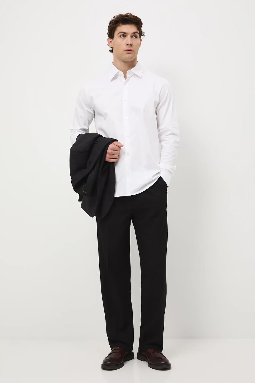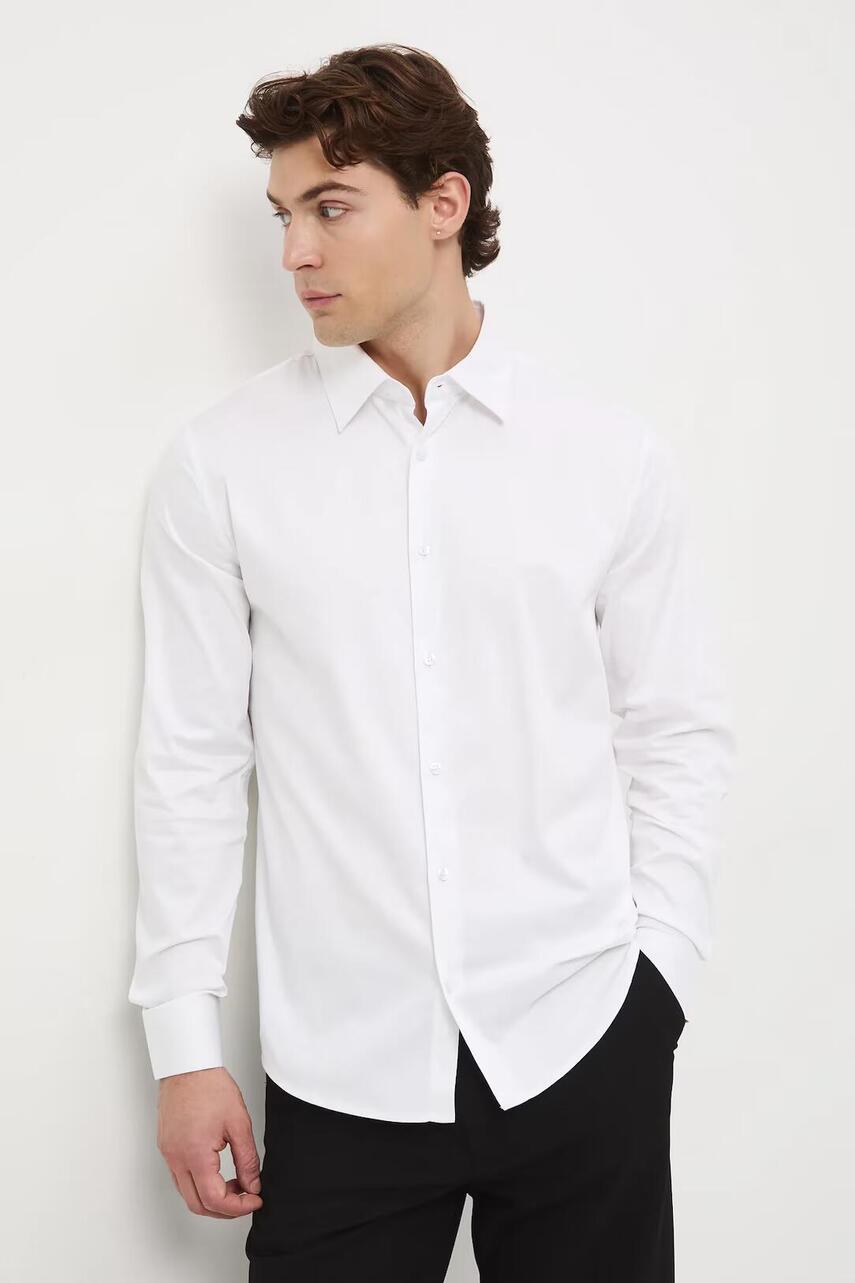 Сорочка фасону slim прилягає до тіла, природно підкреслюючи фігуру та забезпечуючи комфортне носіння. - Довгий рукав. - Манжети на ґудзиках. - Класичний, злегка ущільнений, комір kent. - Застібається на гудзики. - Гладка тканина.