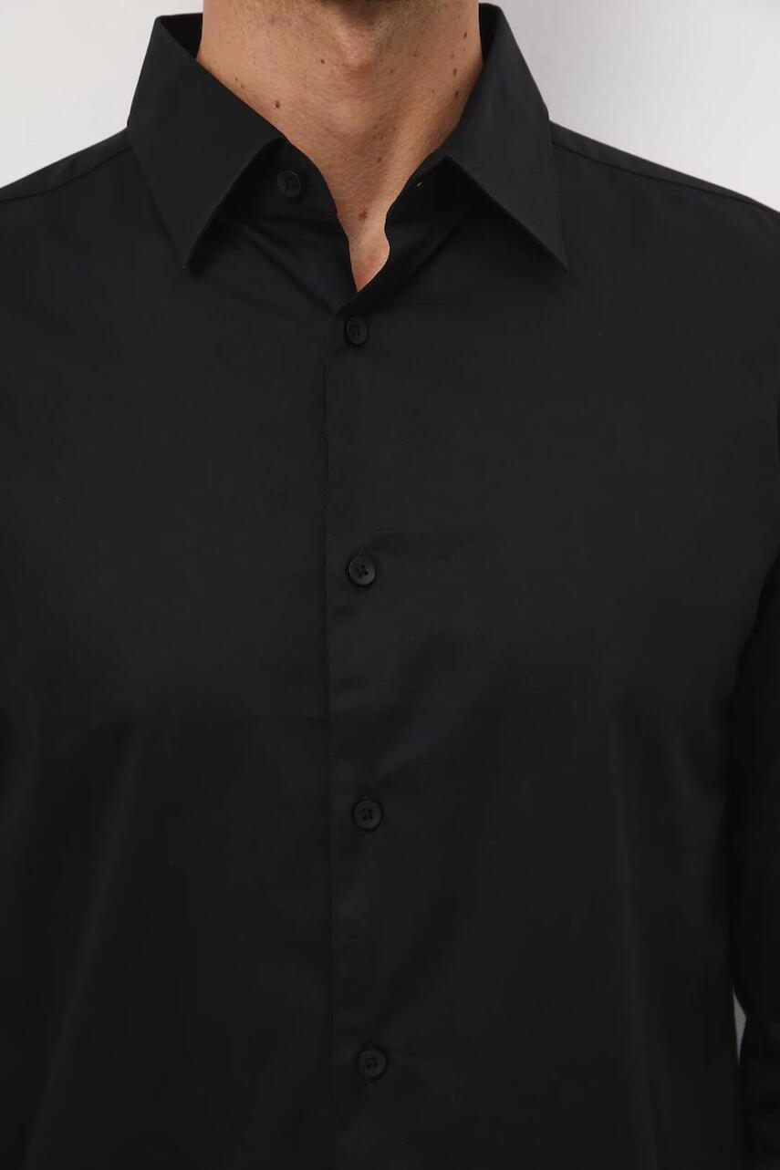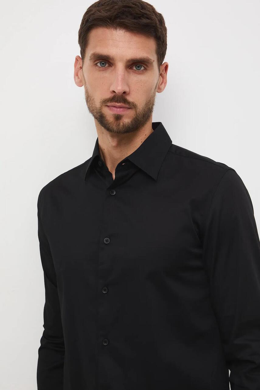 Сорочка фасону slim прилягає до тіла, природно підкреслюючи фігуру та забезпечуючи комфортне носіння. - Довгий рукав. - Манжети на ґудзиках. - Класичний, злегка ущільнений, комір kent. - Застібається на гудзики. - Гладка тканина.