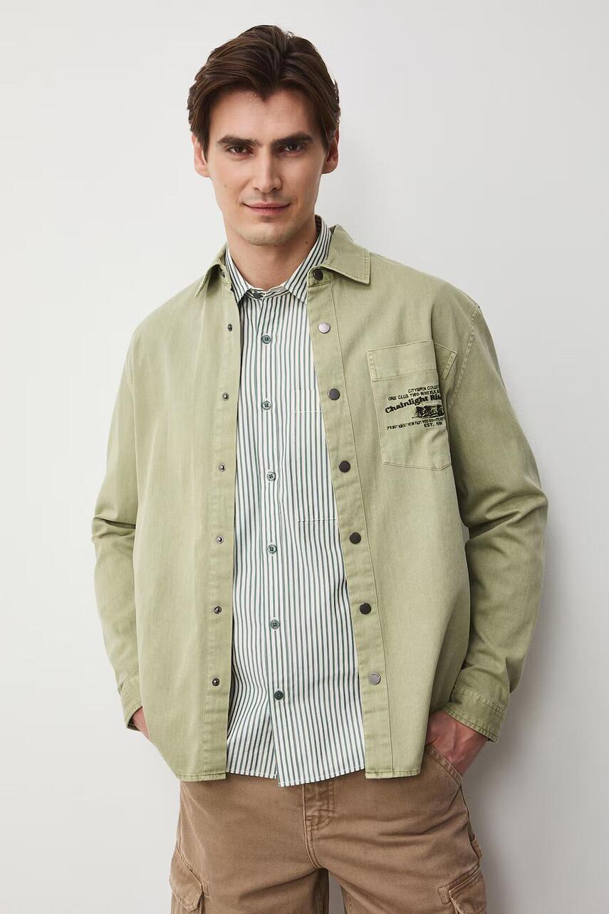 Крій regular fit. - Довгий рукав. - Занижена лінія плечей. - Манжети на кнопках. - Модель з коміром. - Застібається на кнопки. - Накладна нагрудна кишеня. - Модель з принтом. - Модель з декоративною вишивкою.