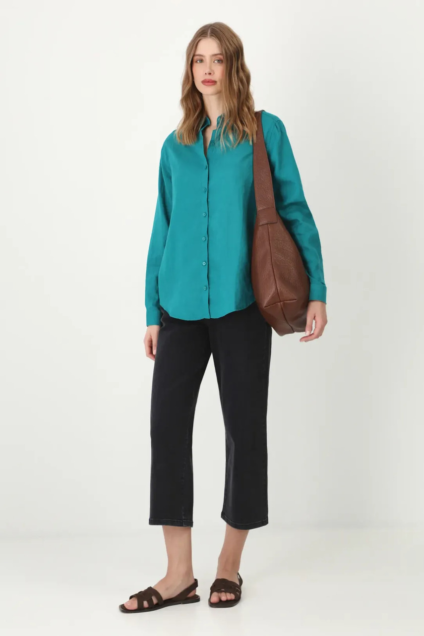 Сорочка жіноча лляна MEDICINE RS24-KDD501 Колір Зелена сталь