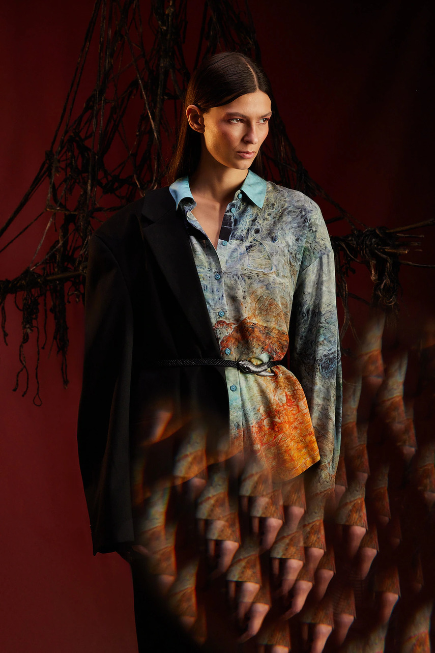 Сорочка зі спеціальної колекції Zdzis?aw Beksi?ski x Medicine. Модель виготовлена з принтованої тканини.