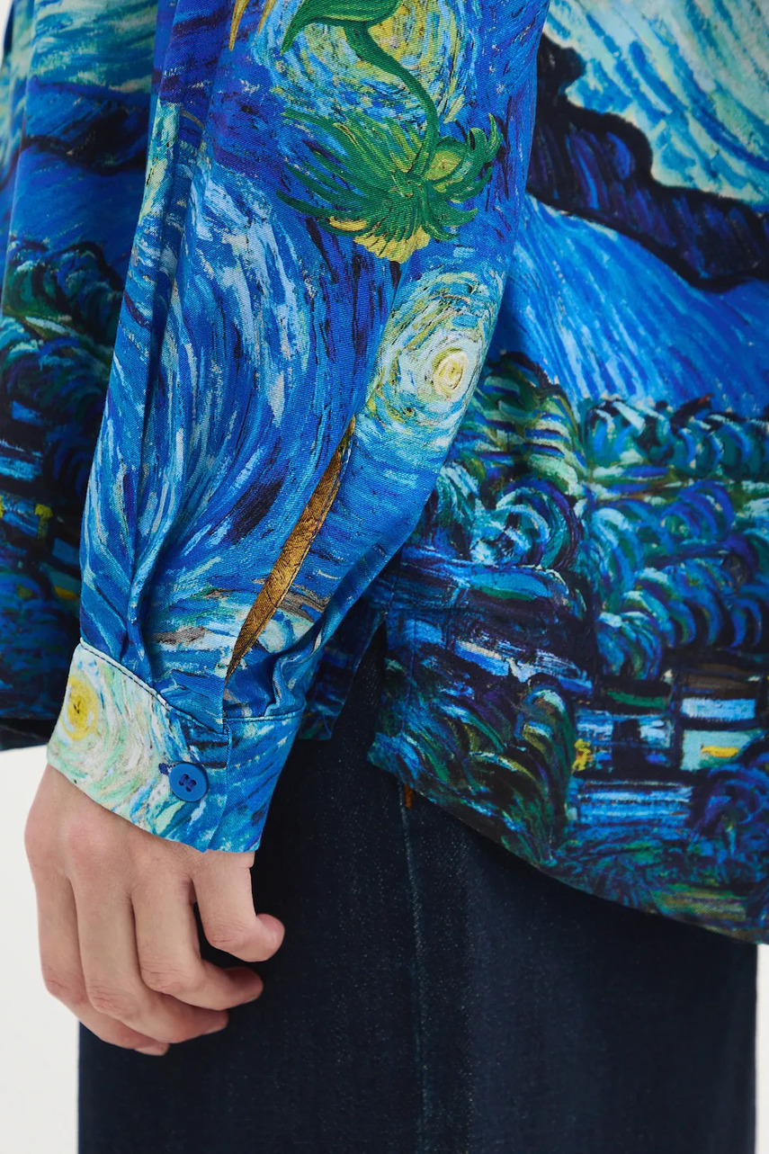 Візерунок представляє колаж із фрагментів творів «Зоряна ніч» та «Натюрморт: вазон із дванадцятьма соняшниками» Вінсента ван Гога.