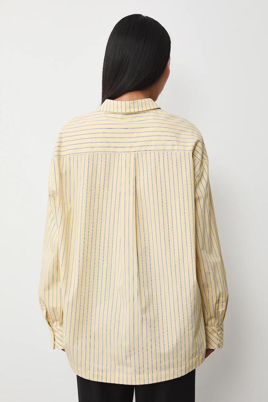 Крій oversize. - Довгий рукав. - Занижена лінія плечей. - Модель з коміром. - Застібається на гудзики. - Візерунок - смужка. - Жакардова тканина.